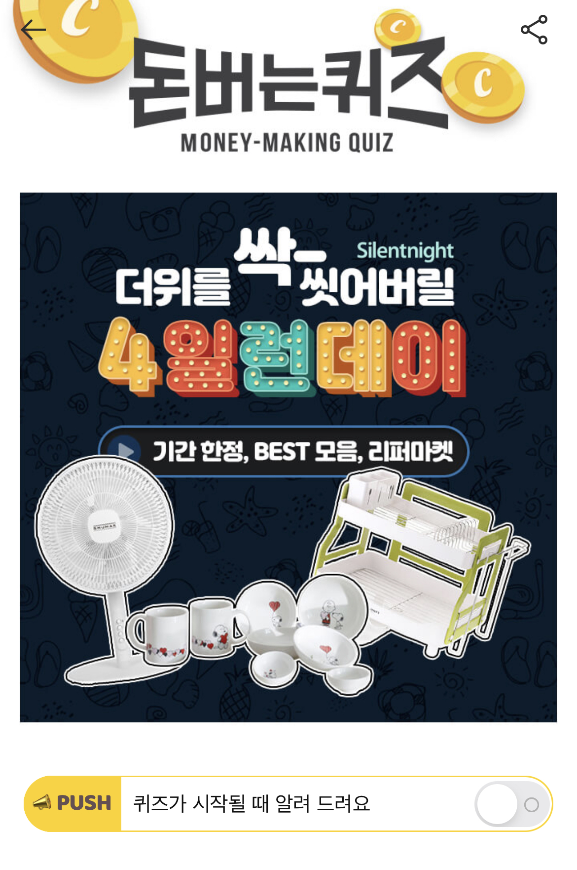 캐시워크 돈버는 퀴즈 정답 사일런나잇 4일런데이 2ㄷㅅㄱㄱㅈㄷ