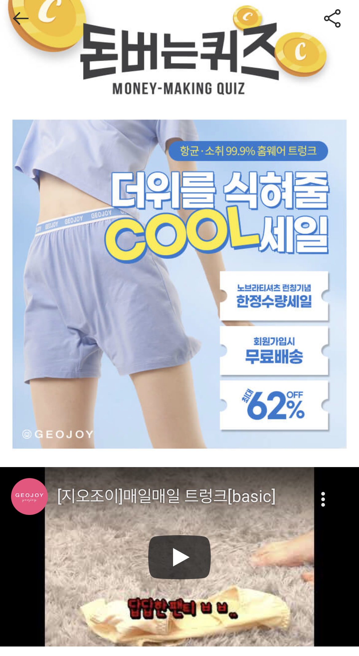 캐시워크 돈버는 퀴즈 정답 지오조이 매일매일 트렁크 ㅇㅇㄹㅋ