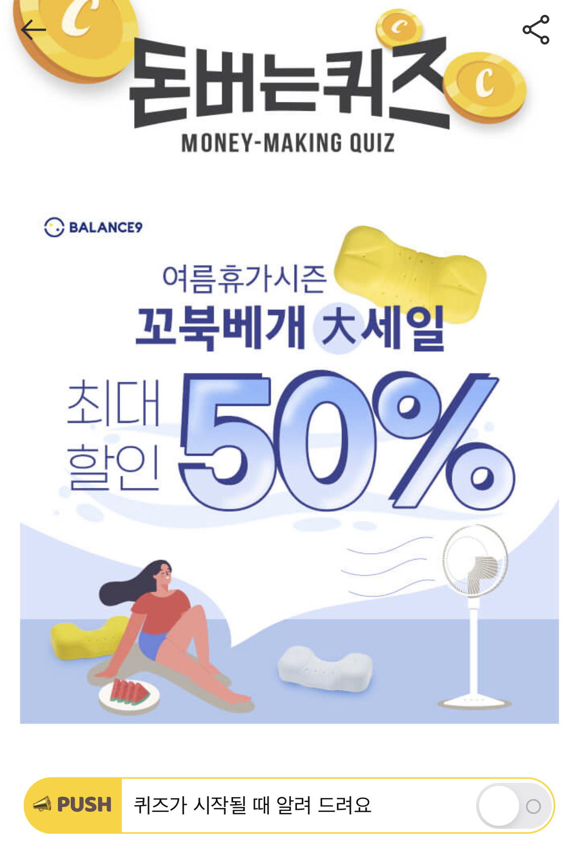 캐시워크 돈버는 퀴즈 정답 꼬북베개 ㄷㅊㅇ