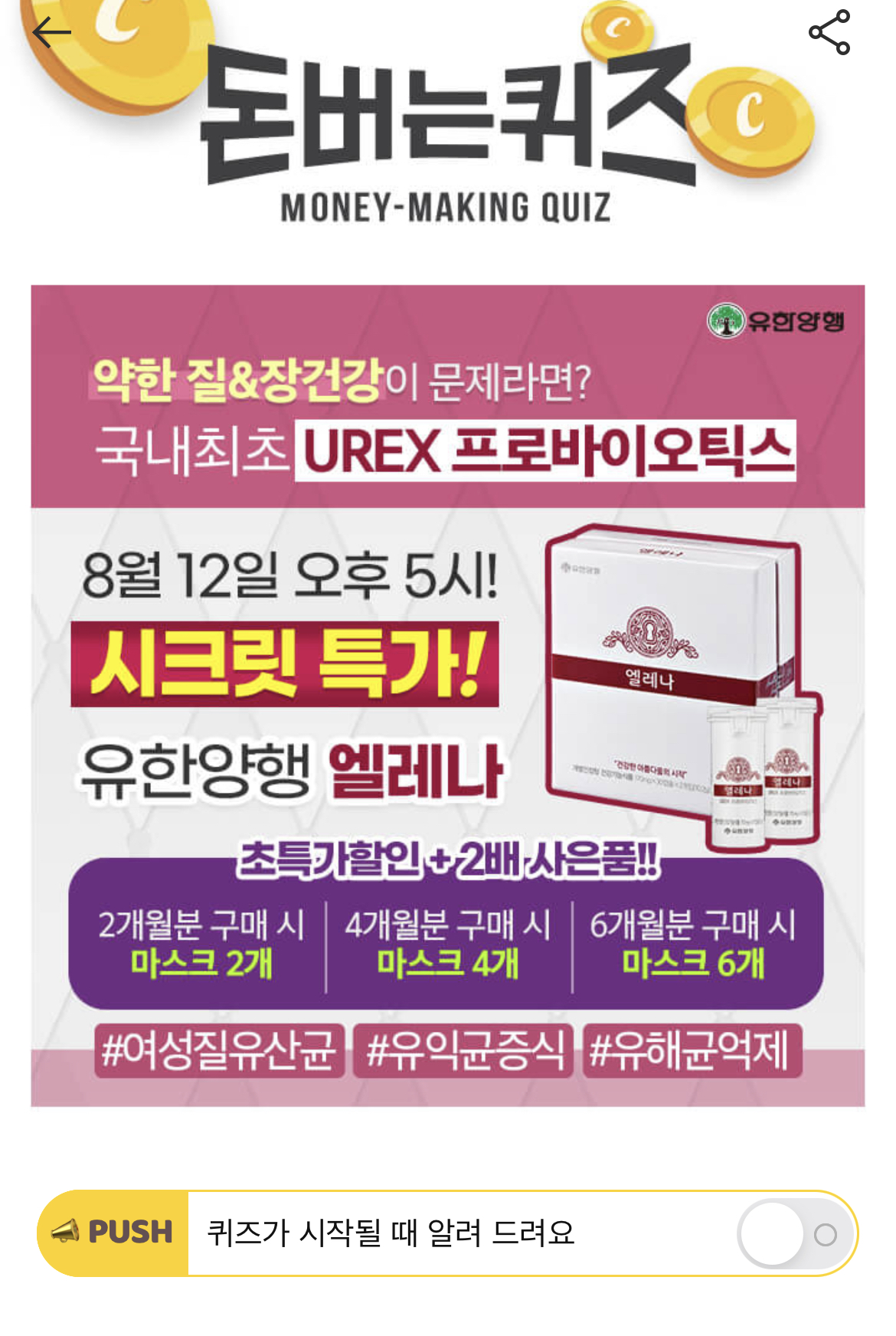 캐시워크 돈버는 퀴즈 정답 유한양행 엘레나 ㅅㅊㄱ