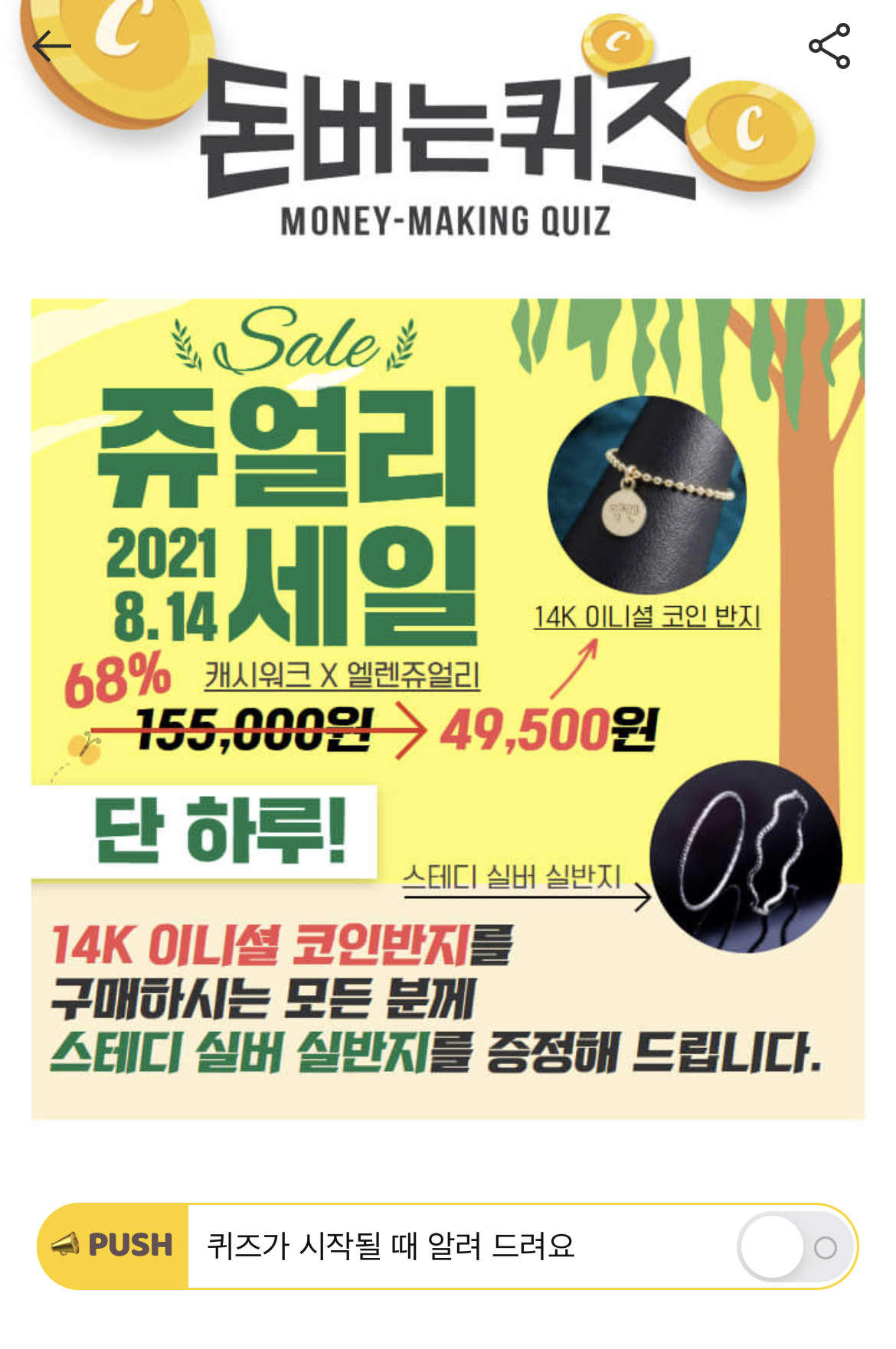 캐시워크 돈버는 퀴즈 정답 엘렌쥬얼리 ㅅㅌㄷㅅㄹㅅㅂㅈ