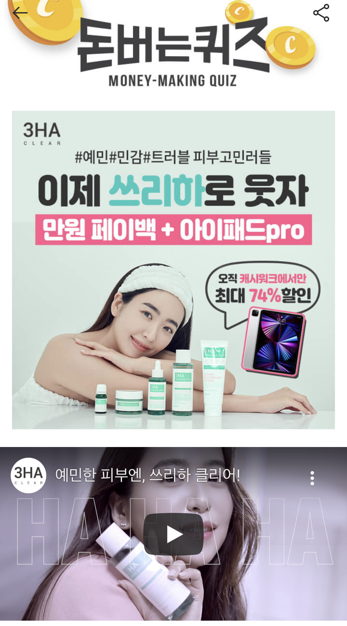 캐시워크 돈버는 퀴즈 정답 쓰리하 병풀추출물