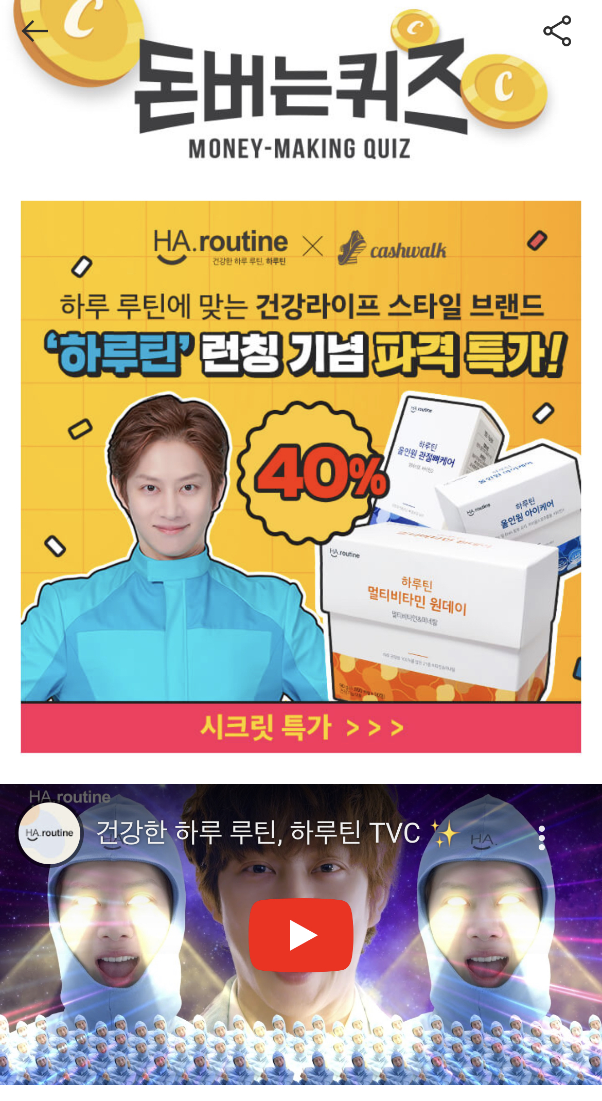 캐시워크 돈버는 퀴즈 정답 하루틴 opti