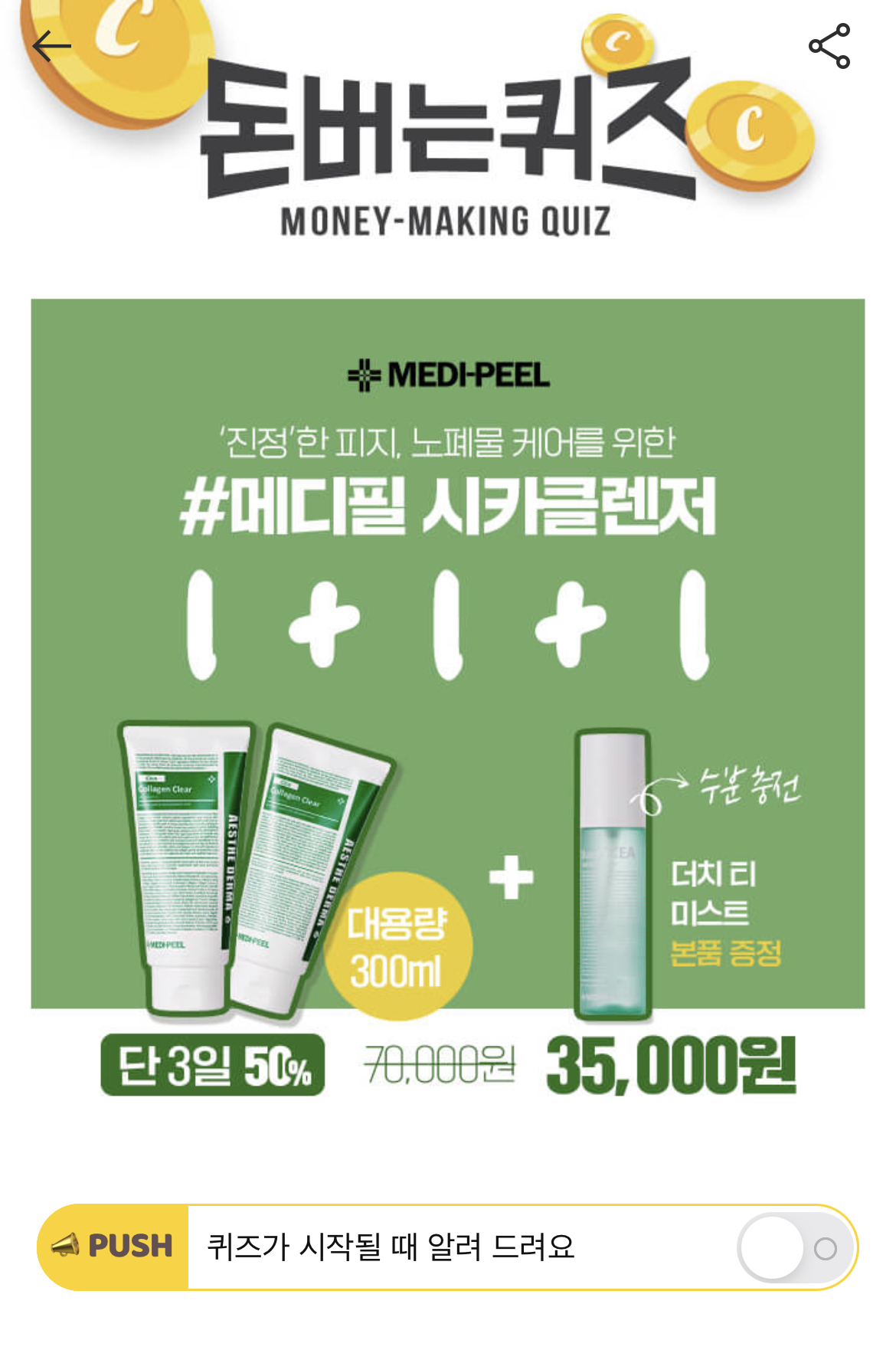 캐시워크 돈버는 퀴즈 정답 그린 시카 콜라겐 클리어 ㅁㅅㅇㅈ