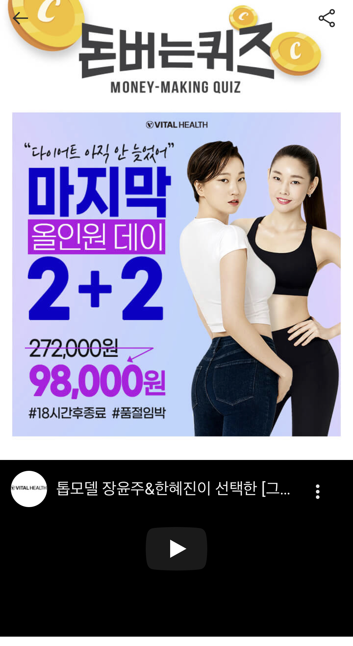 캐시워크 돈버는 퀴즈 정답 바이탈헬스 ㅎㅂㅌㅊ