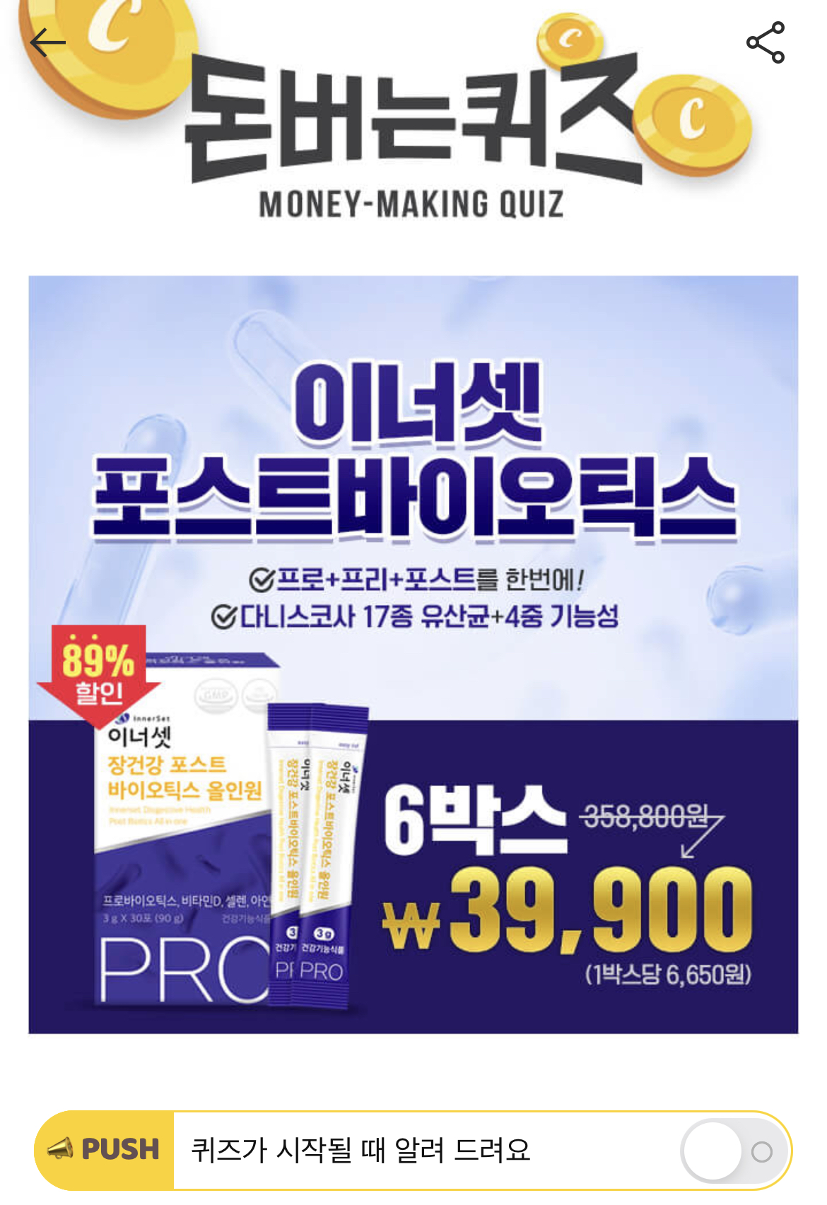 캐시워크 돈버는 퀴즈 정답 이너셋 포스트바이오틱스 숫자