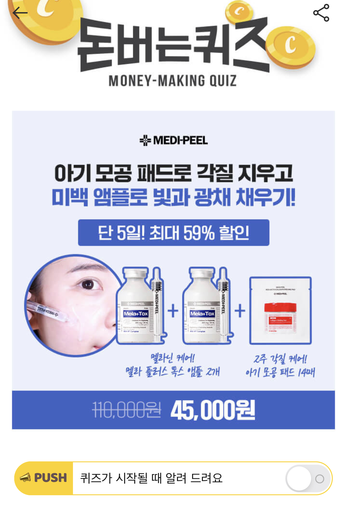 캐시워크 돈버는퀴즈 정답 멜라 플러스 톡스 앰플