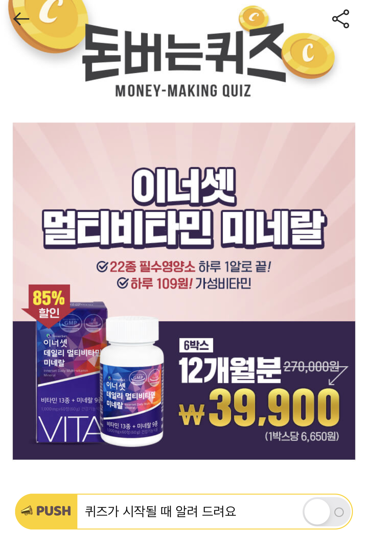 캐시워크 돈버는 퀴즈 정답 이너셋 멀티비타민 미네랄 ㅈㅇㄹㅇㅅㅈ