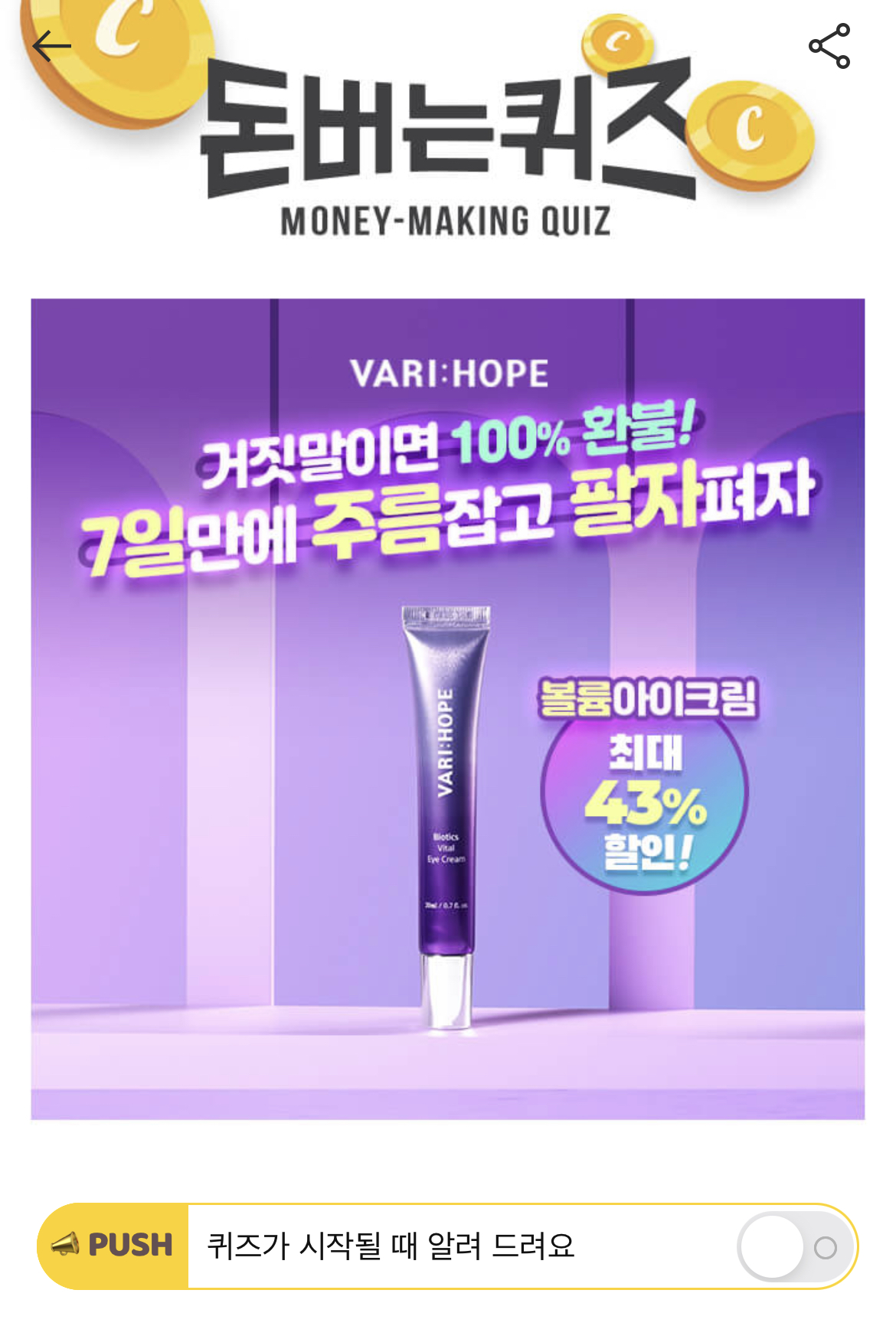 캐시워크 돈버는 퀴즈 정답 베리홉 볼륨아이크림 ㅂㅈㄱㅅ