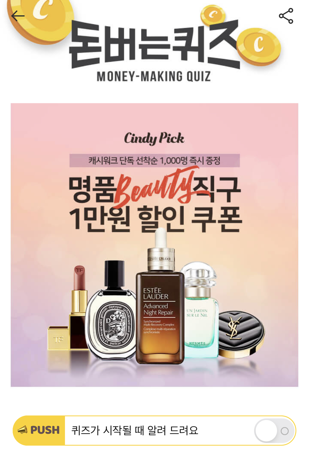 캐시워크 돈버는퀴즈 정답 신디픽 ㅇㅅㅂㅈ