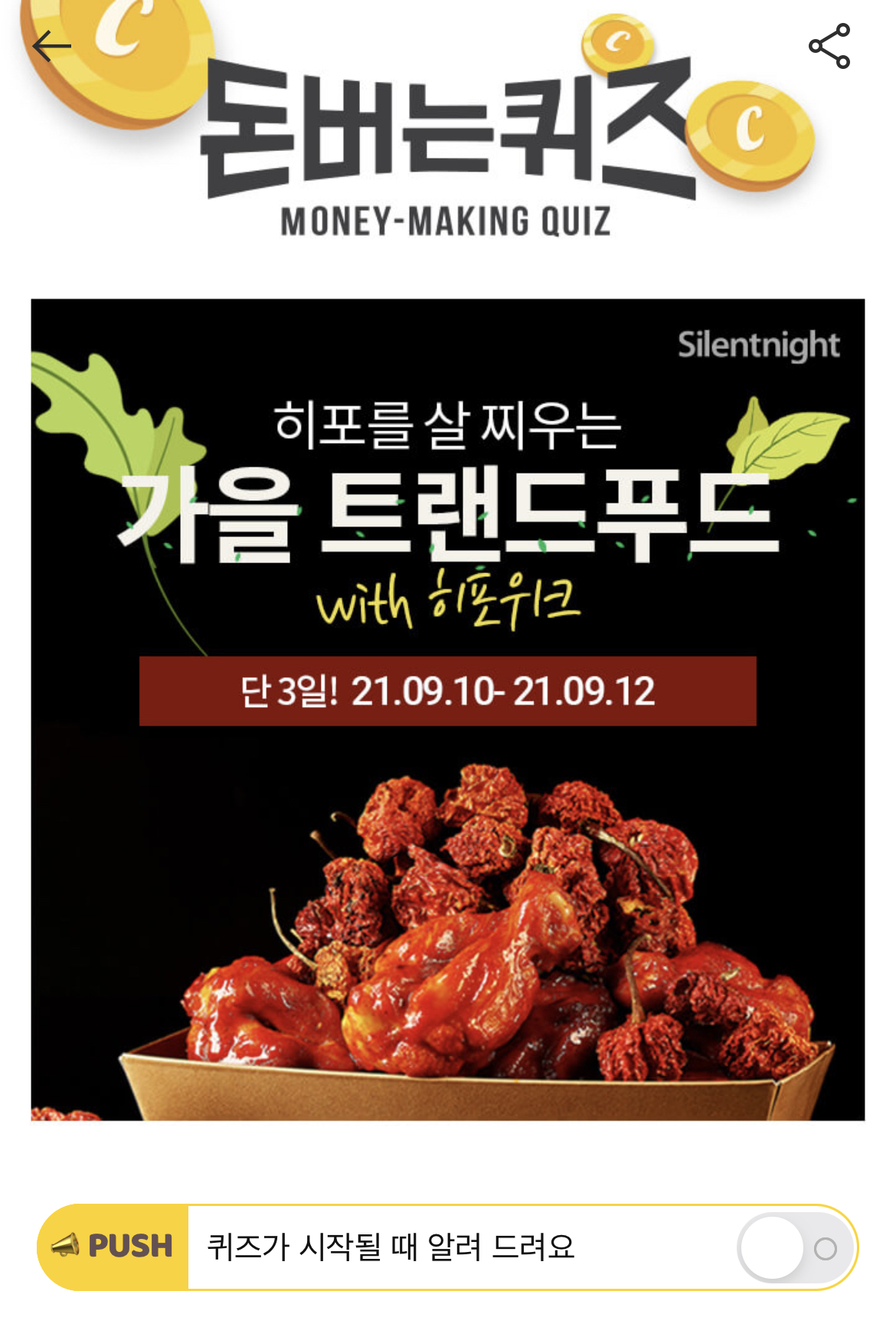 캐시워크 돈버는 퀴즈 정답 사일런나잇 9월 히포위크 ㅁㄴㅂㅅㅋ