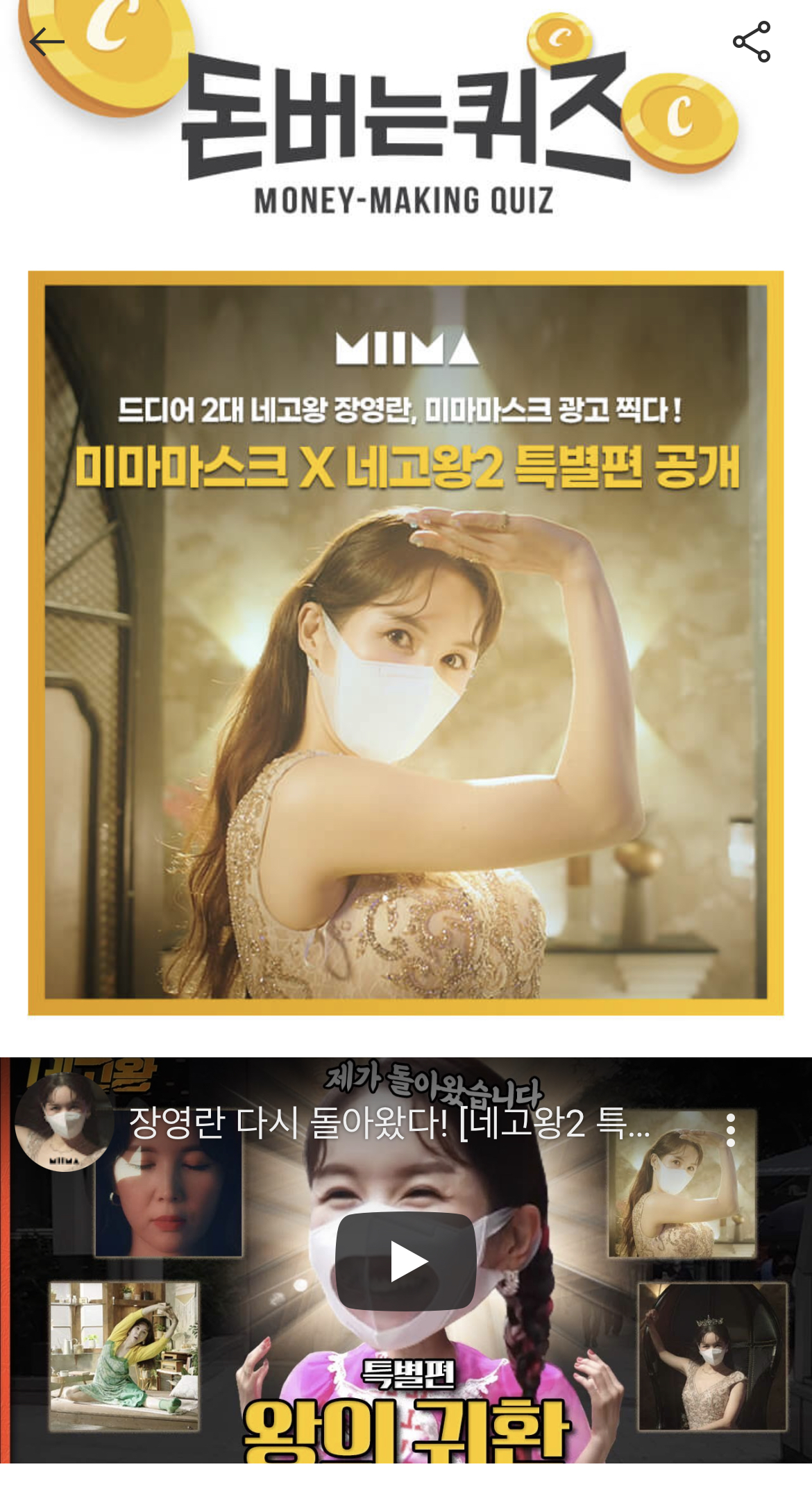 2대 네고왕 장영란이 미마 마스크 광고를 찍었습니다!