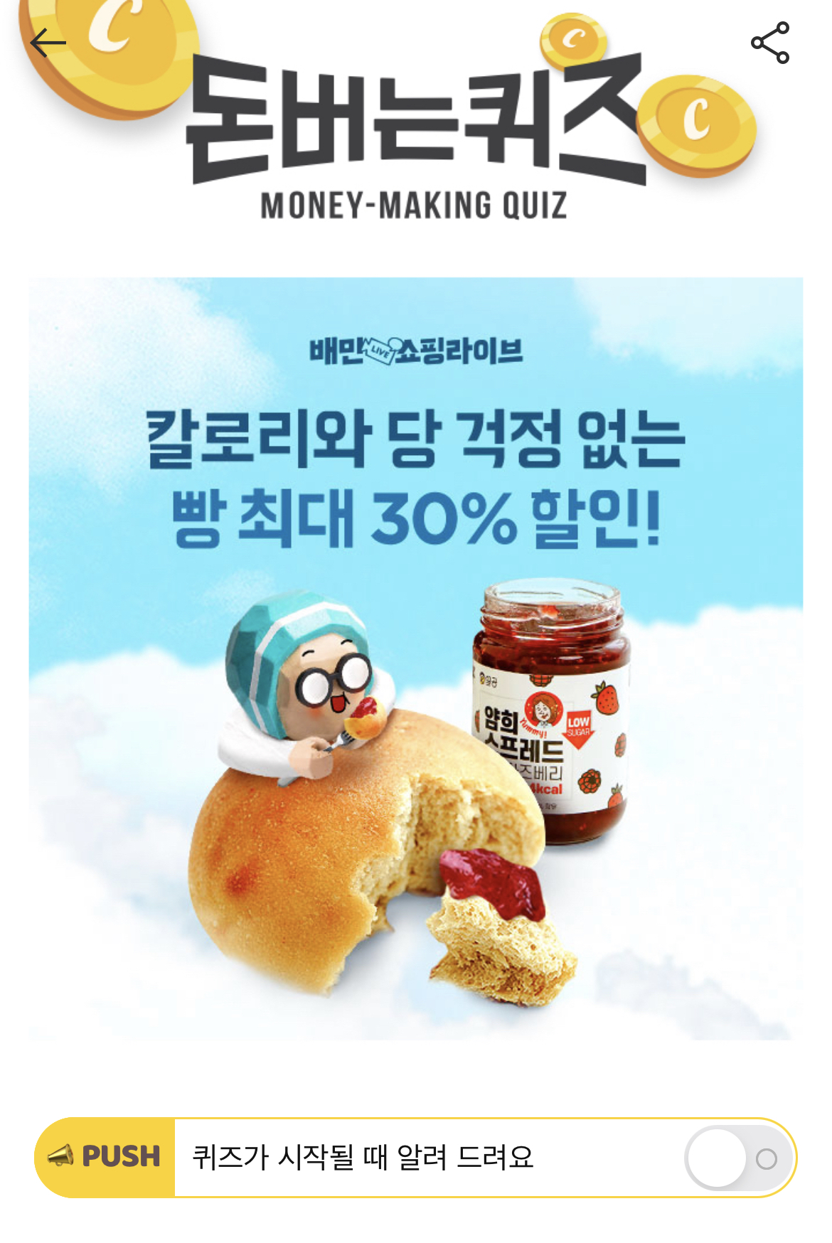 캐시워크 돈버는 퀴즈 정답 배민쇼핑라이브 OO빵