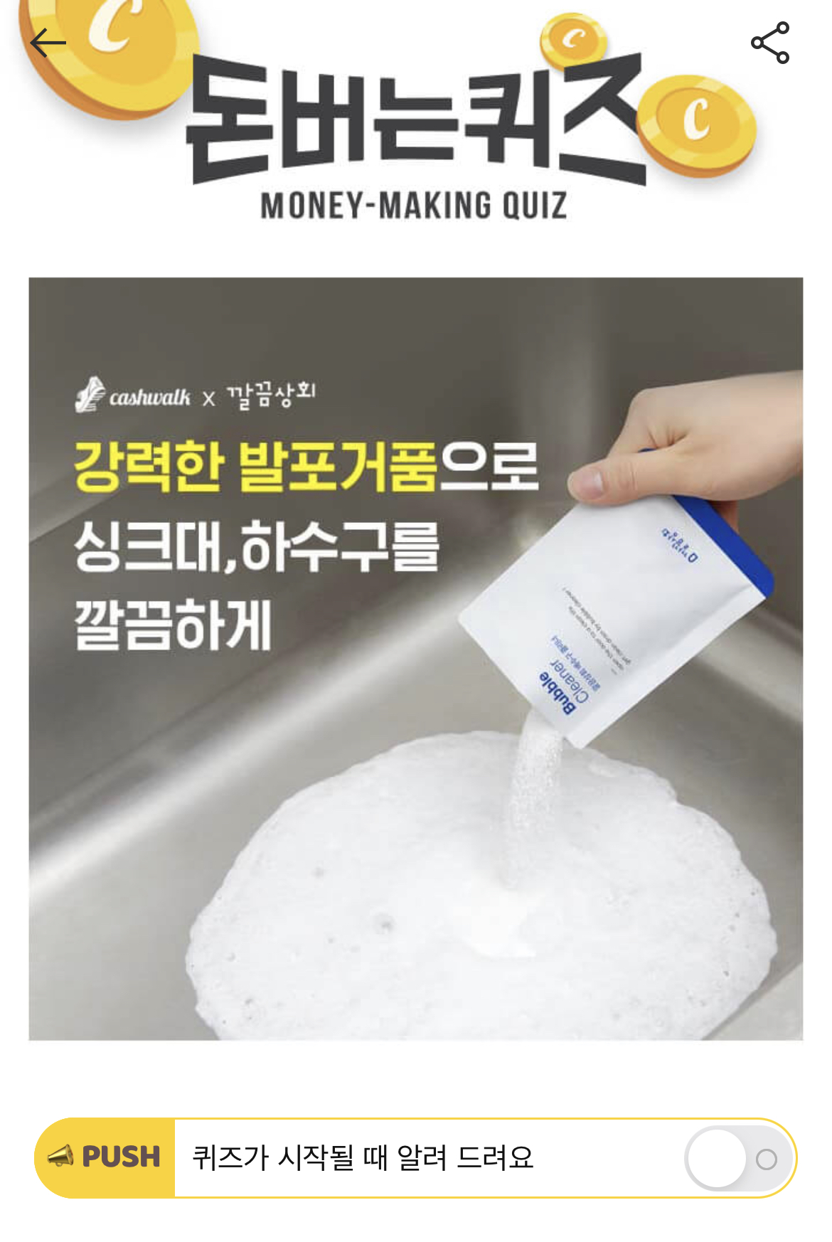 캐시워크 돈버는 퀴즈 정답 깔끔상회 배수구클리너 ㅇㅊㅁㅎ