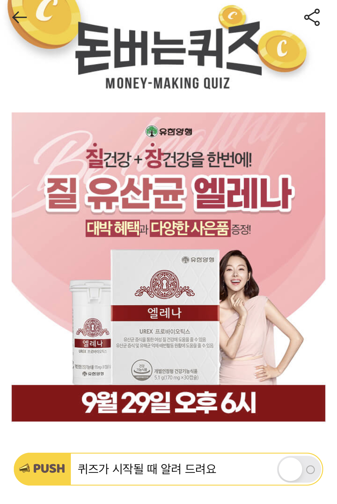 캐시워크 돈버는 퀴즈 정답 엘레나 O개월분