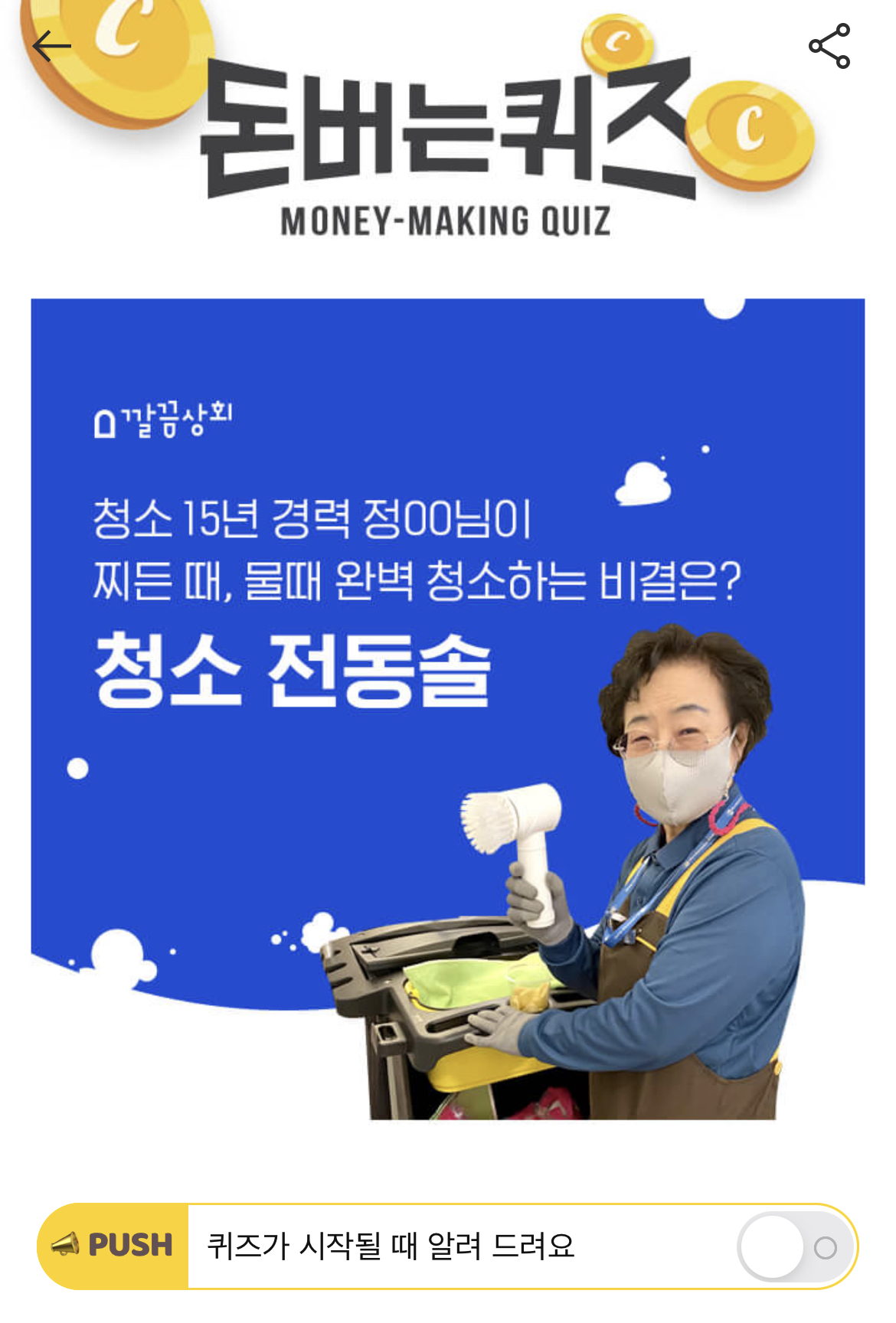 캐시워크 돈버는 퀴즈 정답 깔끔상회 청소전동솔 ㅃㅃㅎㅁㄹ