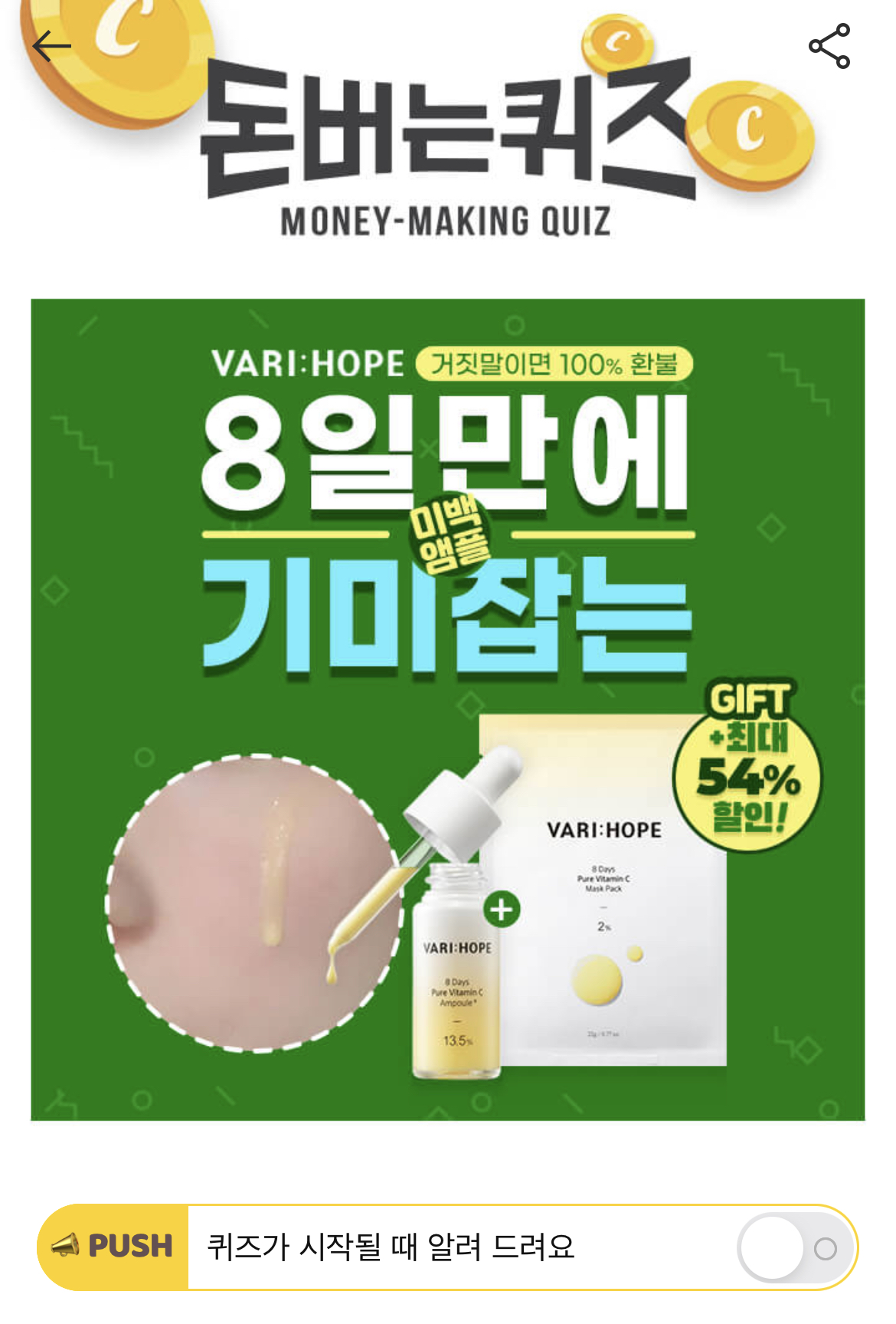 캐시워크 돈버는 퀴즈 정답 베리홉 에잇 데이즈 퓨어 비타민C 앰플 ㅈㅂㄱ