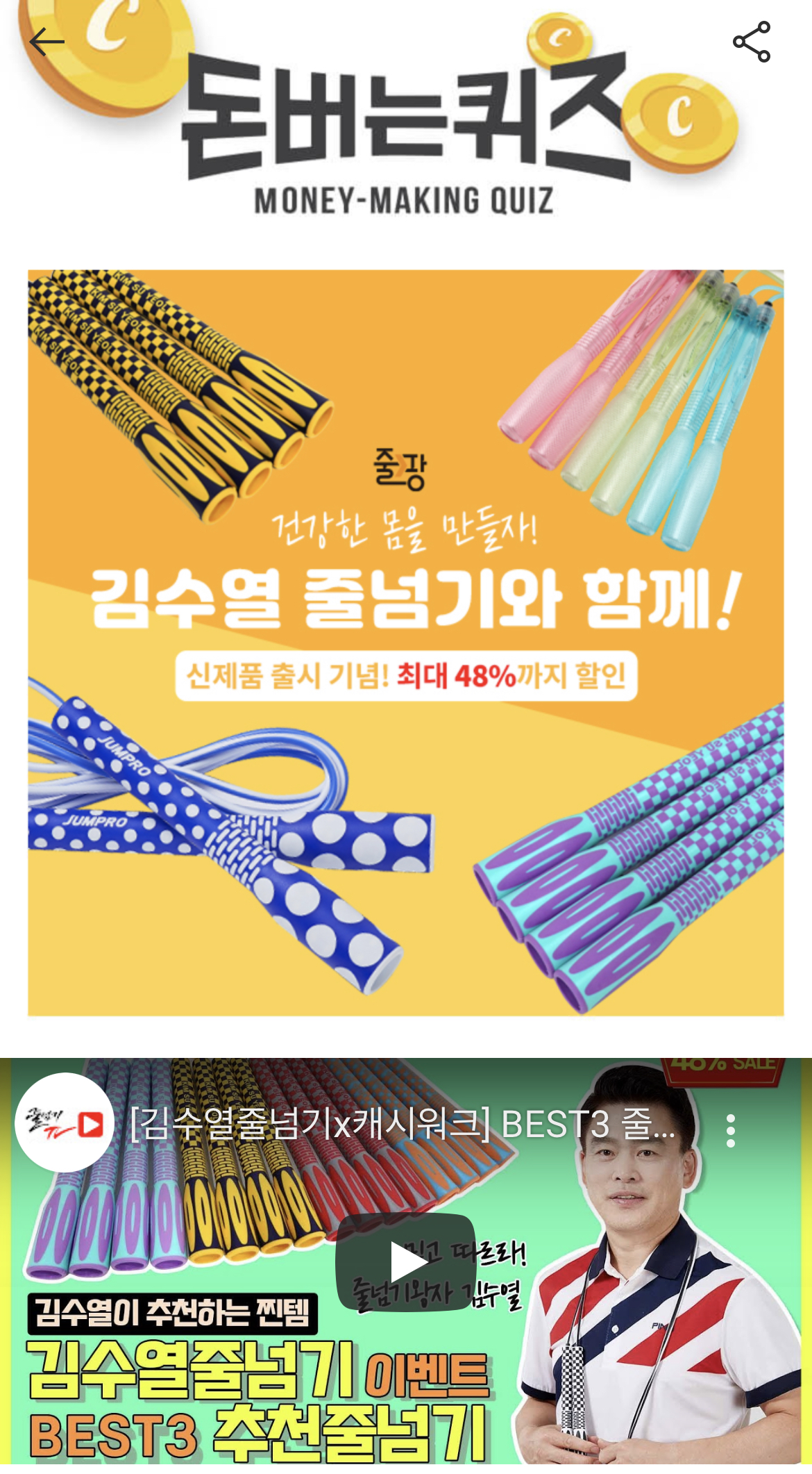 캐시워크 돈버는 퀴즈 정답 김수열 줄넘기 ㅈㅍ