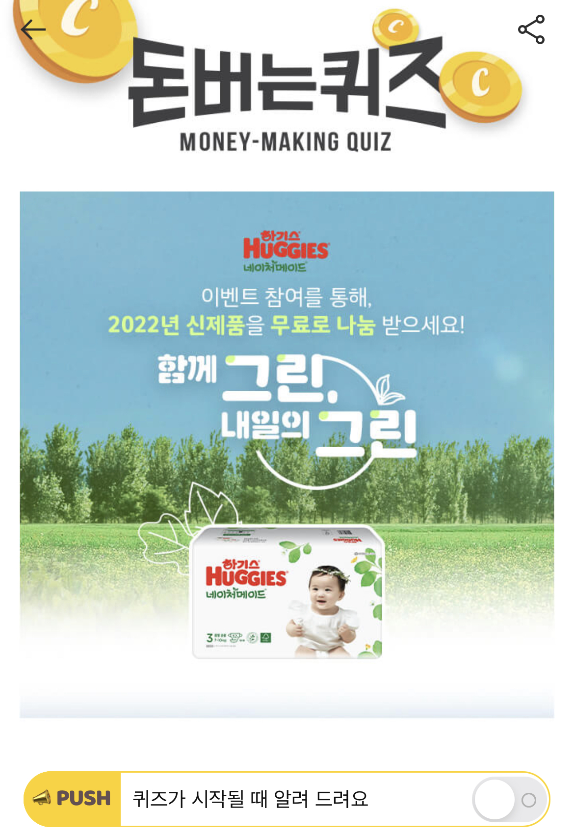 캐시워크 돈버는 퀴즈 정답 하기스 네이처메이드