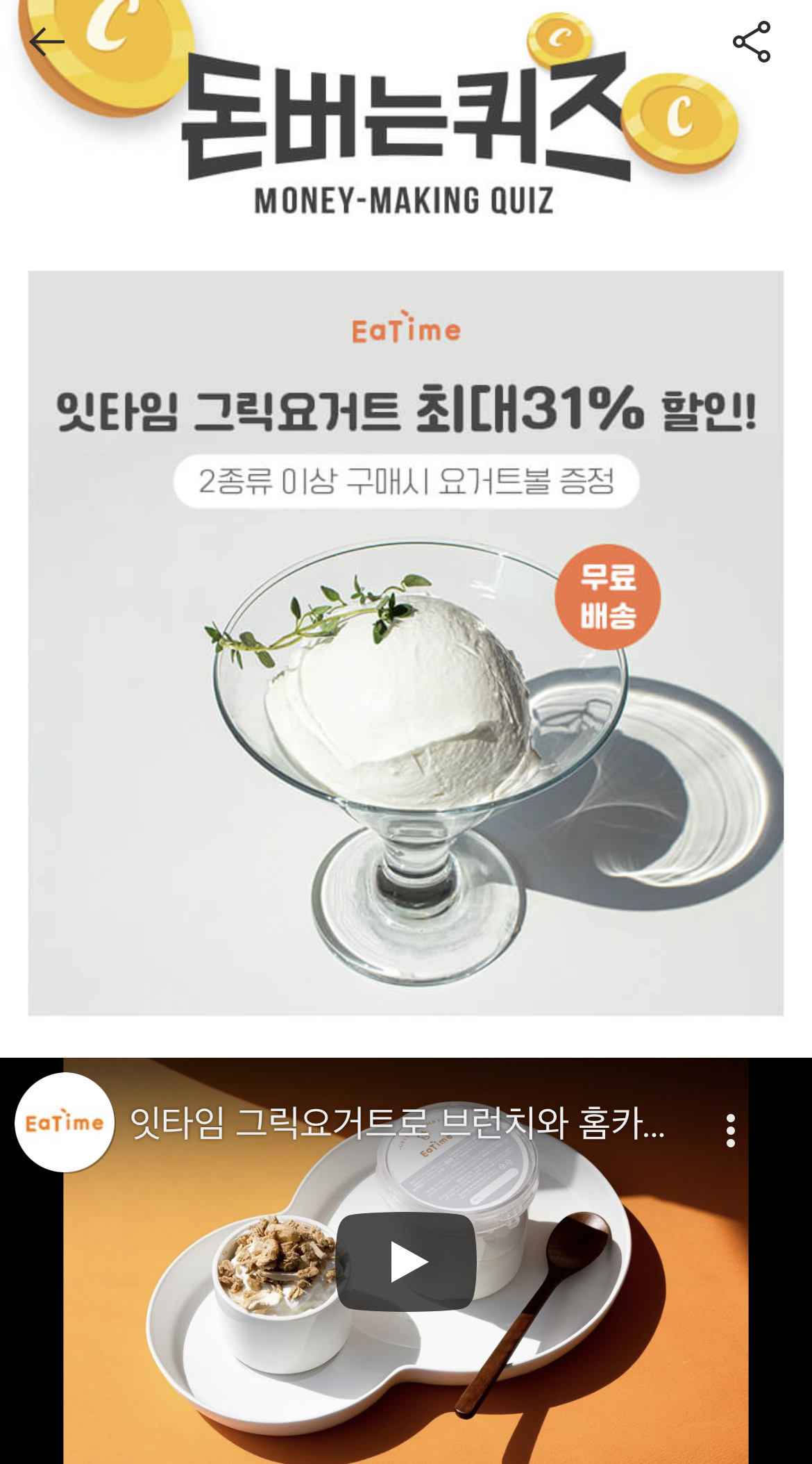 캐시워크 돈버는 퀴즈 정답 잇타임 그릭요거트 ㅋㅍㅌ