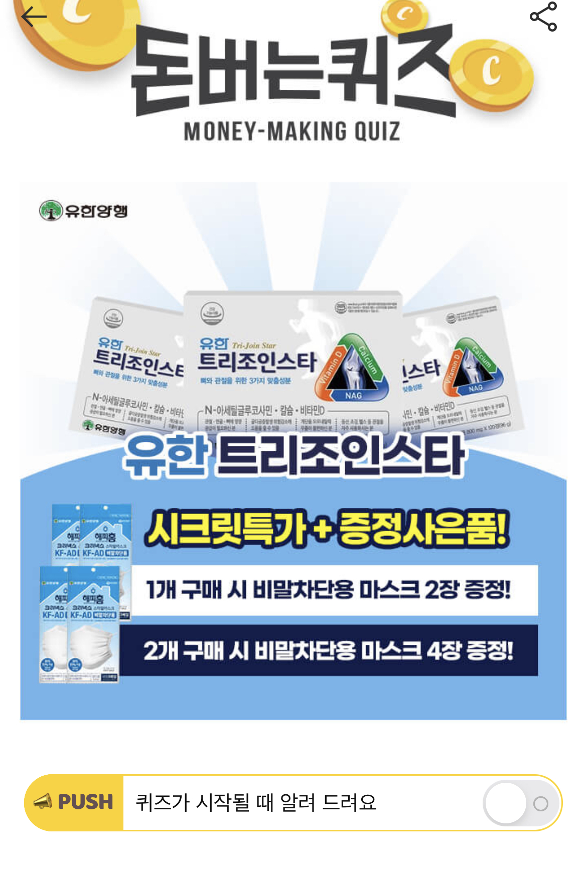 캐시워크 돈버는 퀴즈 정답 유한양행 트리조인스타 개별 OOO 포장