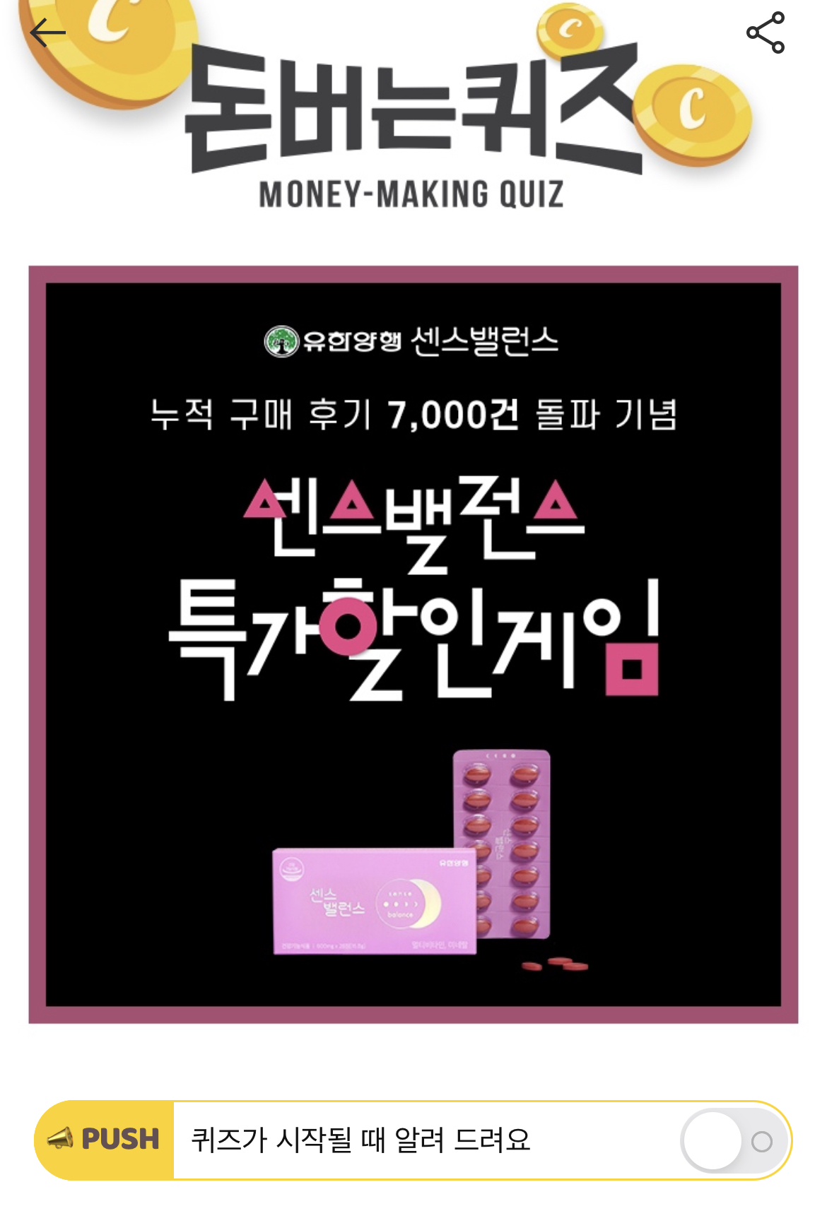 캐시워크 돈버는 퀴즈 정답 유한양행 여성종합비타민 센스밸런스 한글+영어+숫자