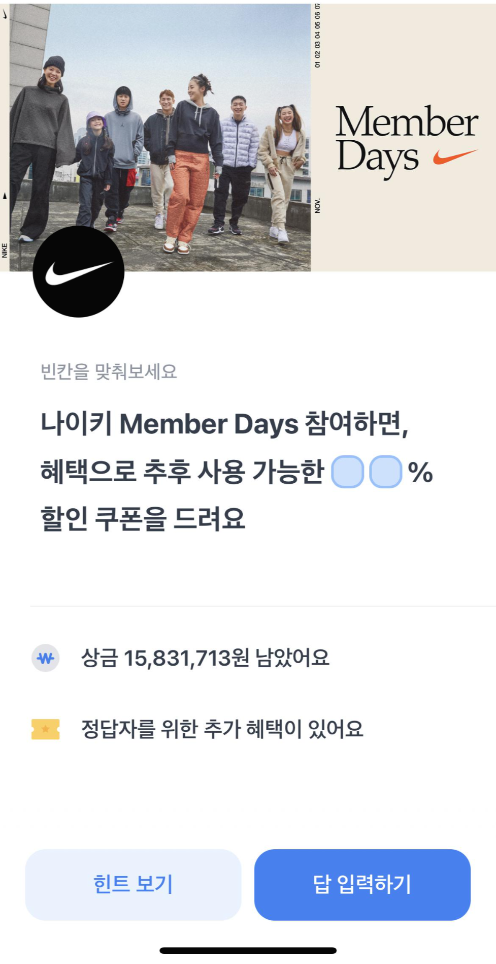 토스 퀴즈 나이키 Member days 할인쿠폰