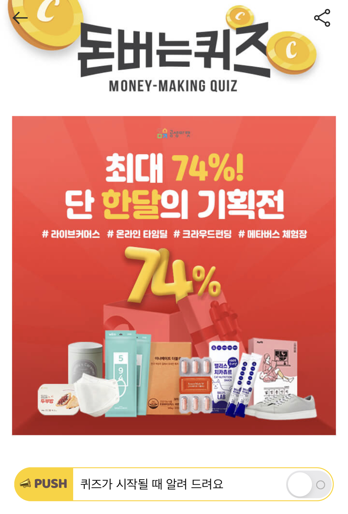 캐시워크 돈버는 퀴즈 정답 공생마켓 2021 서울시 ㄱㅅㅁㅋ