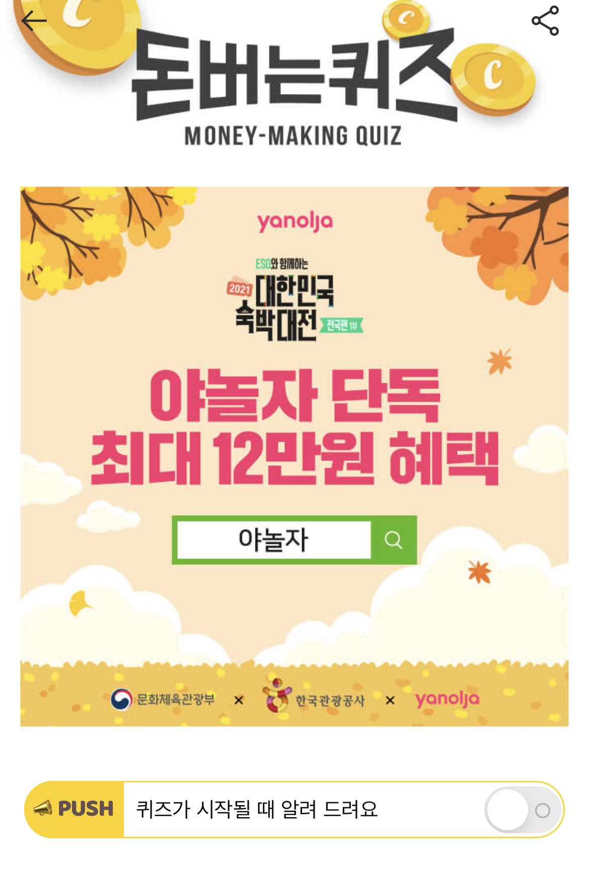 캐시워크 돈버는 퀴즈 정답 야놀자 대한민국 숙박대전 전국편 숫자