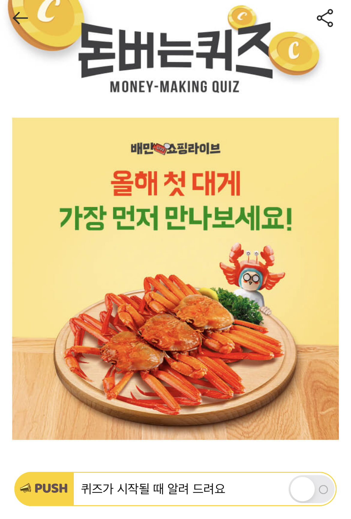 캐시워크 돈버는 퀴즈 정답 배민 쇼핑라이브 OO대게