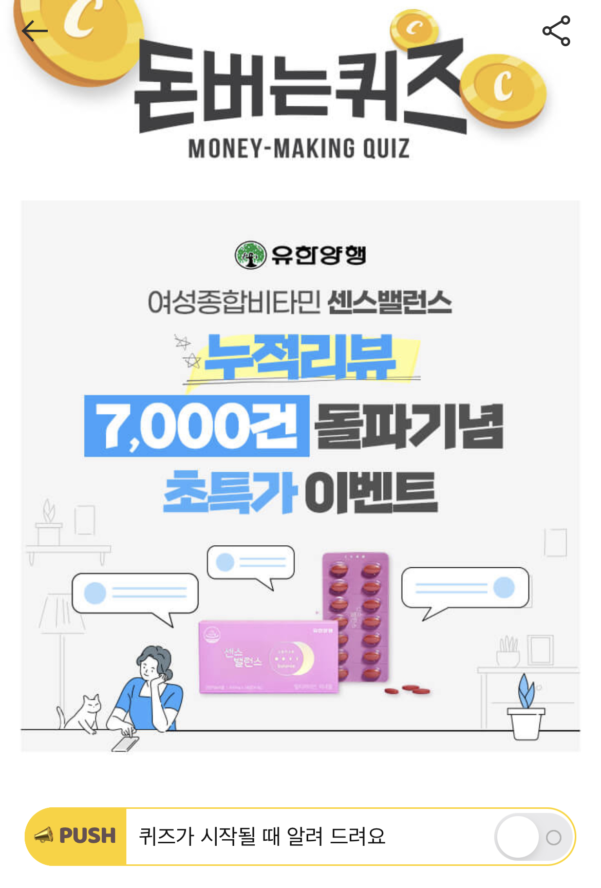 캐시워크 돈버는 퀴즈 정답 유한양행 센스밸런스 여성들 항산화