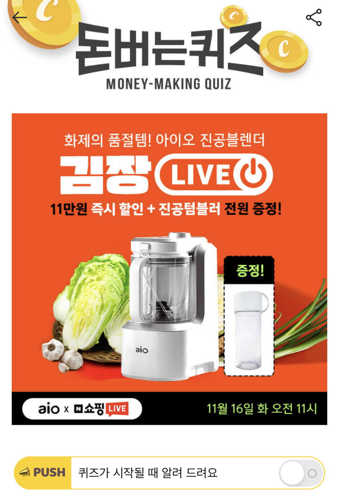 캐시워크 돈버는 퀴즈 정답 아이오 진공블렌더 ㅍㅈ