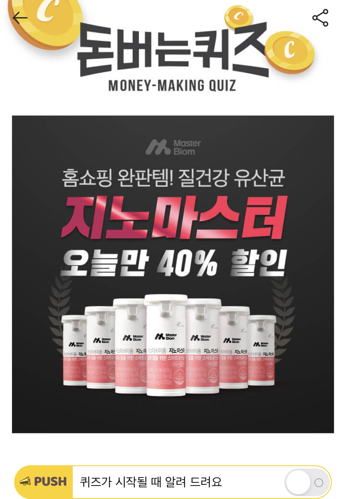 캐시워크 돈버는 퀴즈 정답 여성 질유산균 지노마스터 ㄹㅅㅍㅌ