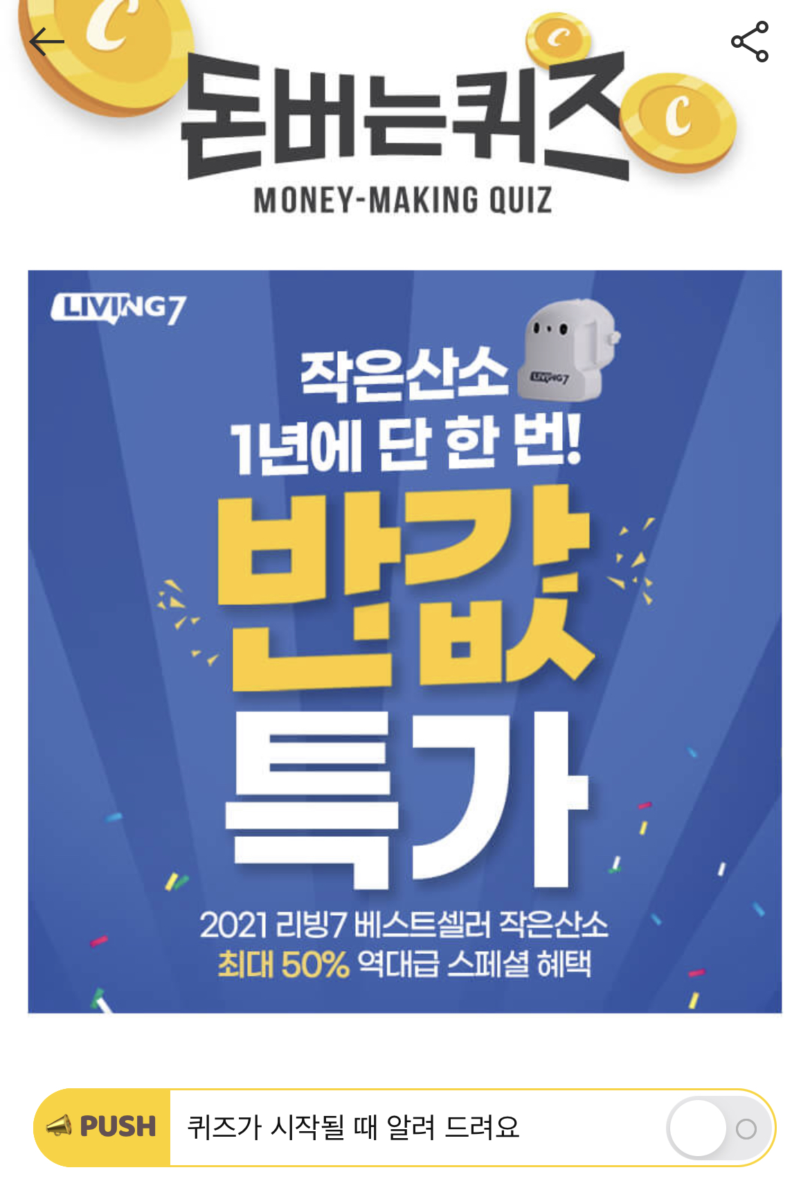 캐시워크 돈버는 퀴즈 정답 작은산소 공기청정기 ㅂㅁㄷ