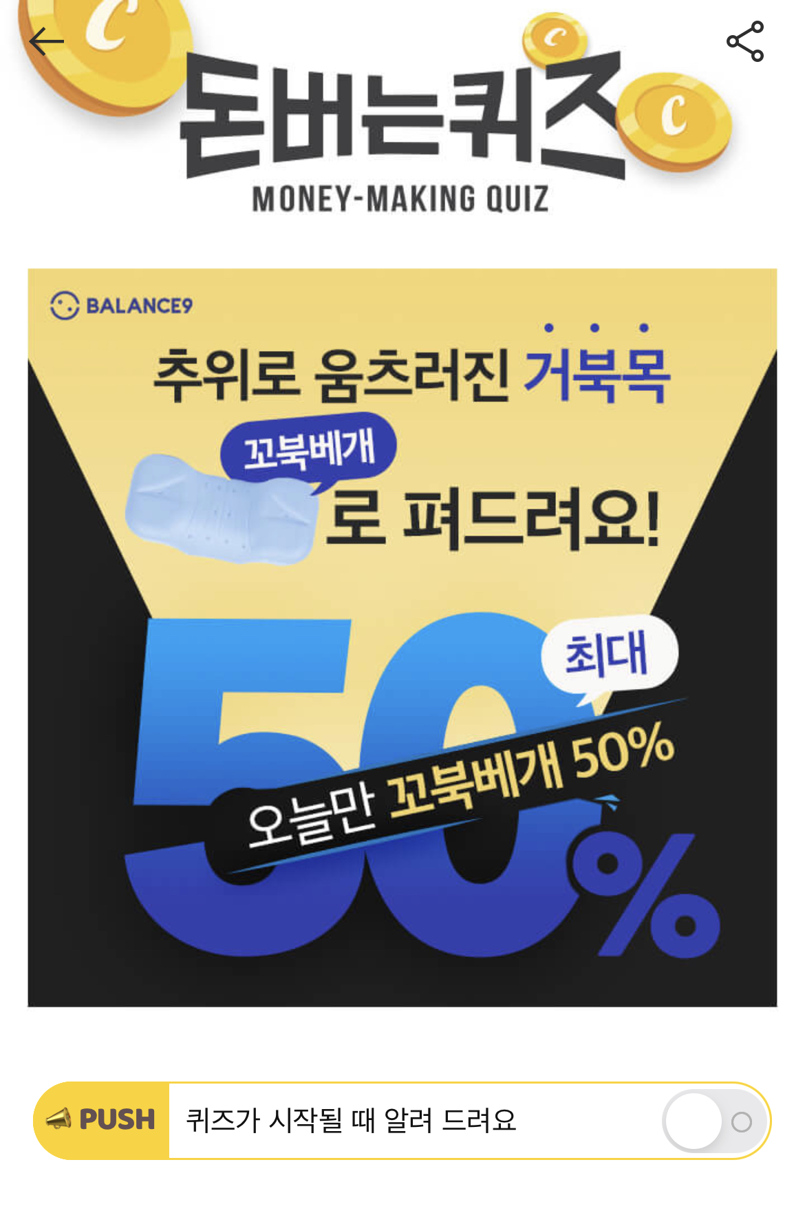 캐시워크 돈버는 퀴즈 정답 꼬북베개 자연스러운 OOO 목형태 유지