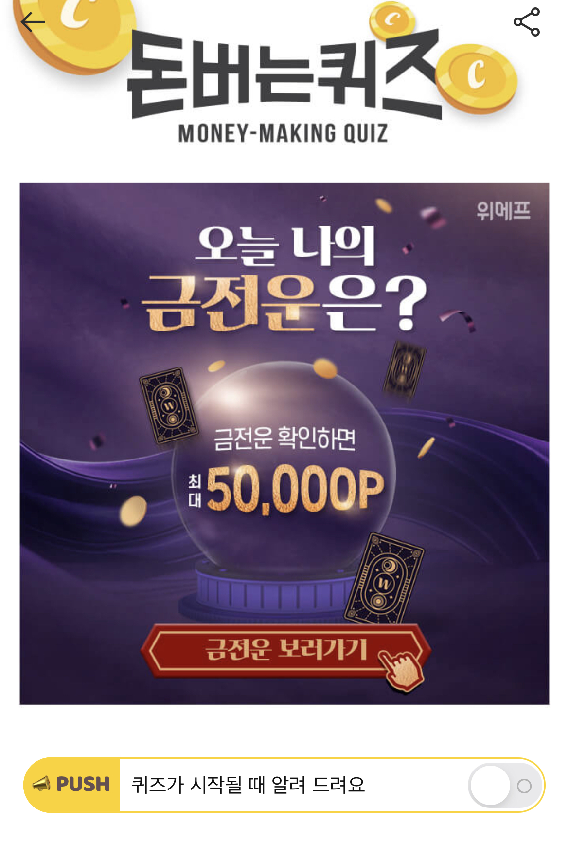 캐시워크 돈버는 퀴즈 정답 위메프 금전운 이벤트 ㅊㄱ