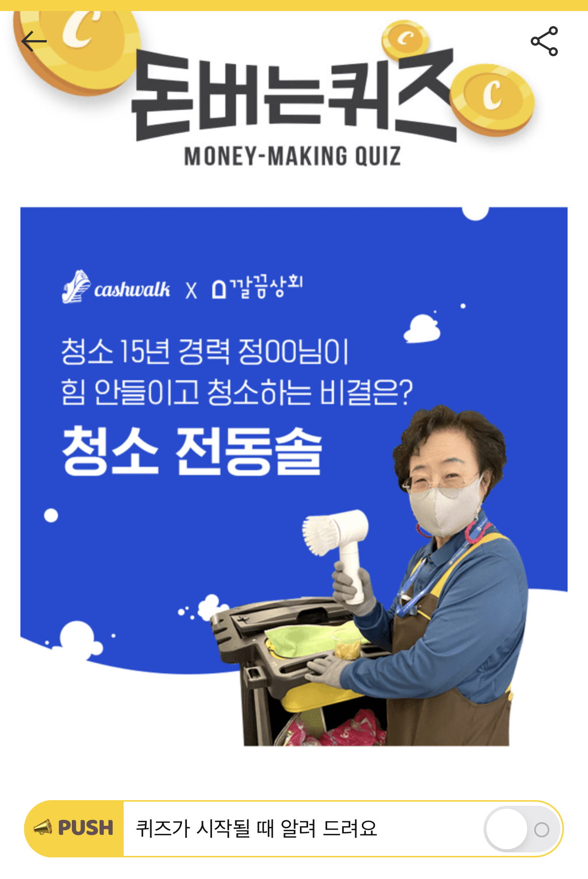 캐시워크 돈버는 퀴즈 정답 깔끔상회 청소전동솔 ㄷㅇㅎㅎㅇ