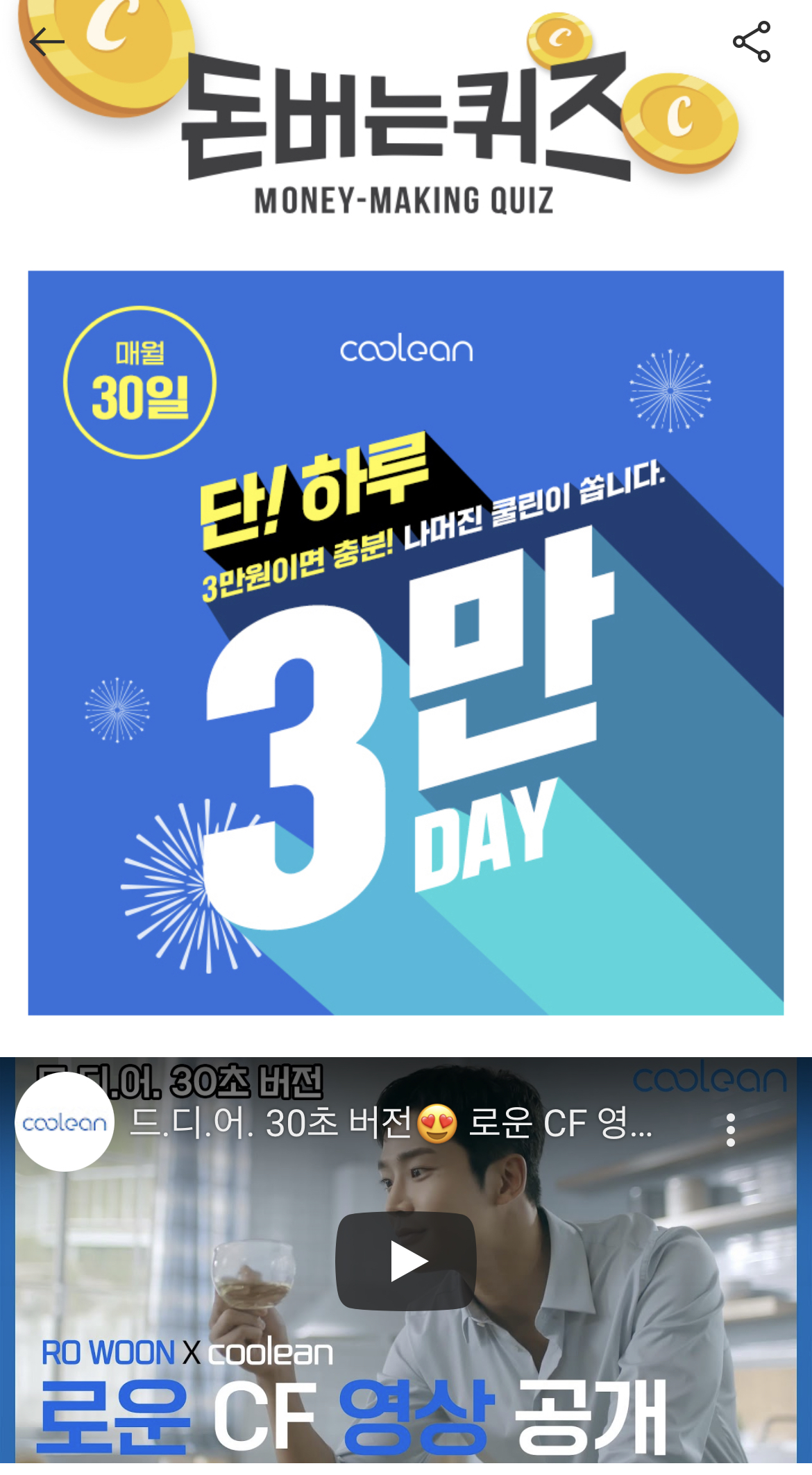 캐시워크 돈버는 퀴즈 정답 쿨린 스마트 가습기 CL'OOO'T 모델 숫자