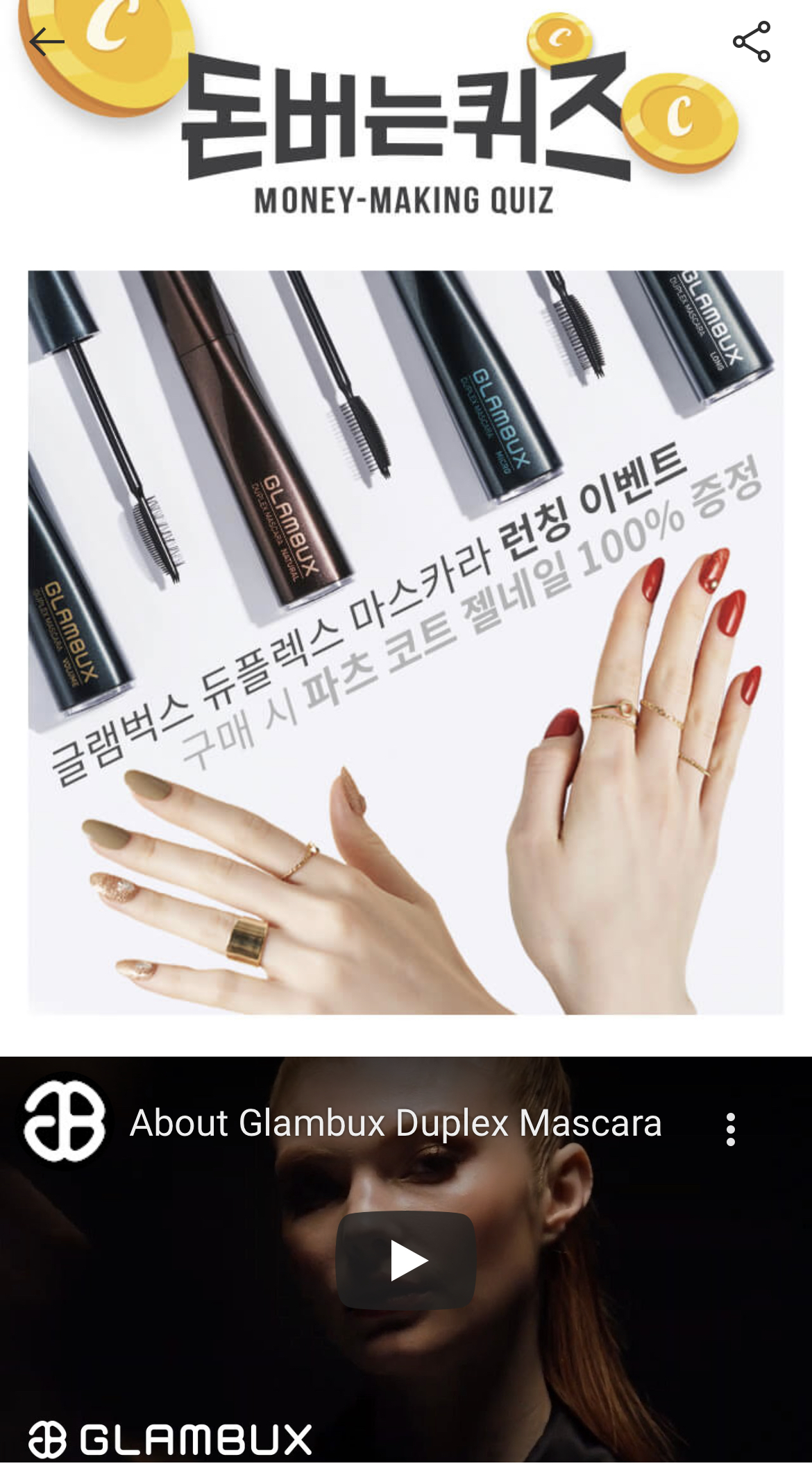 캐시워크 돈버는 퀴즈 정답 글램벅스 신제품 듀플렉스 마스카라 ㅇㅇㄹ