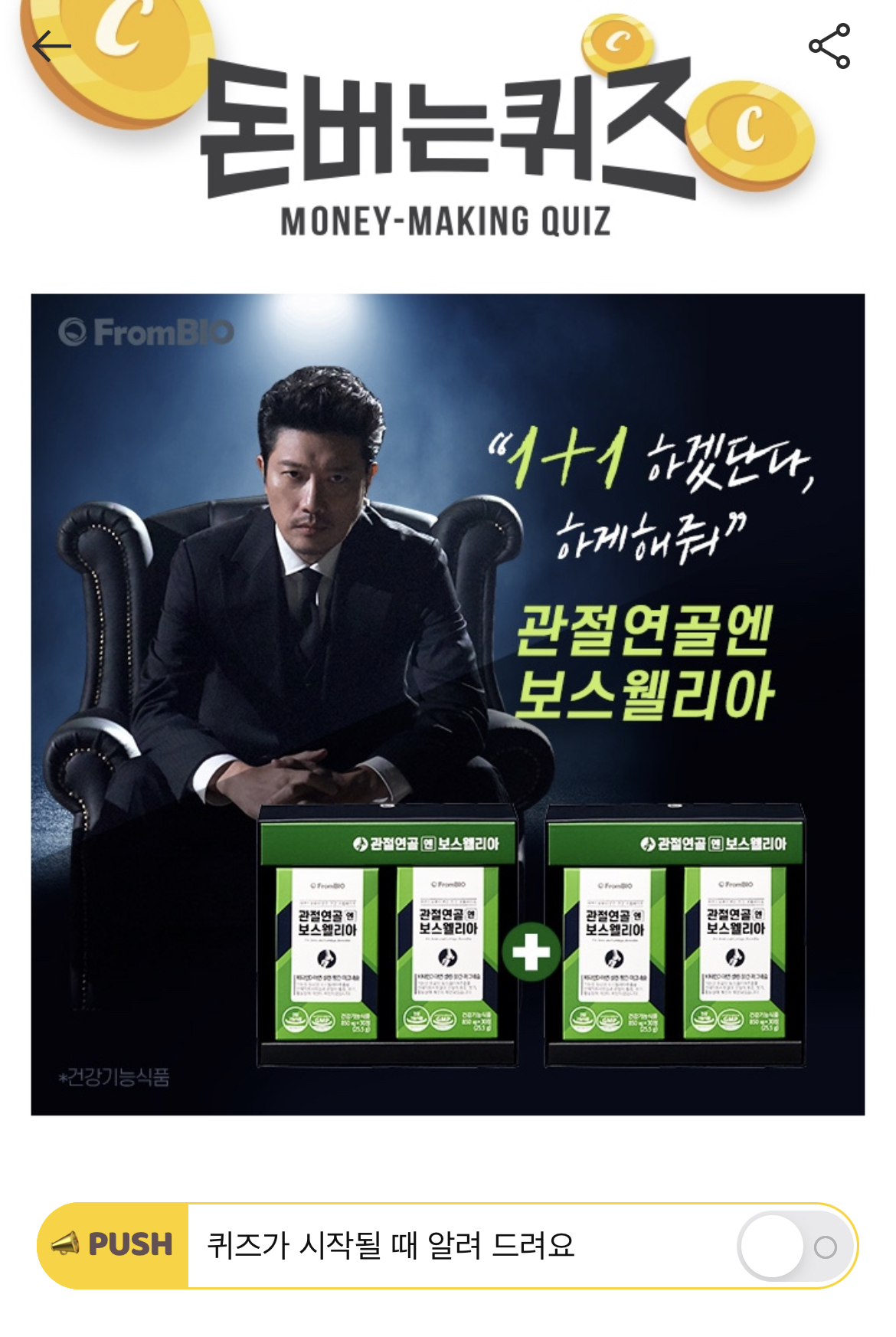 캐시워크 돈버는 퀴즈 정답 프롬바이오 관절연골엔 보스웰리아 권장량 OOO%
