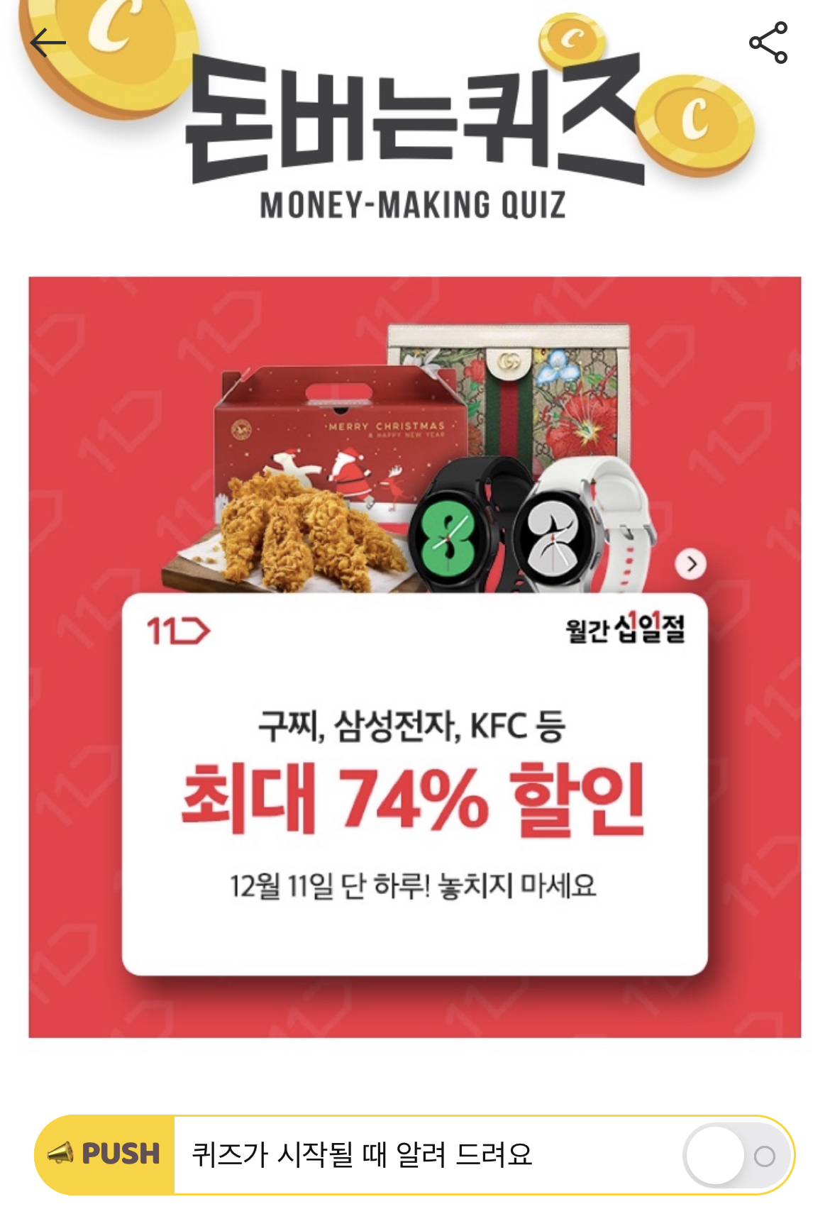 캐시워크 돈버는 퀴즈 정답 11번가 월간십일절 슬로건 영어