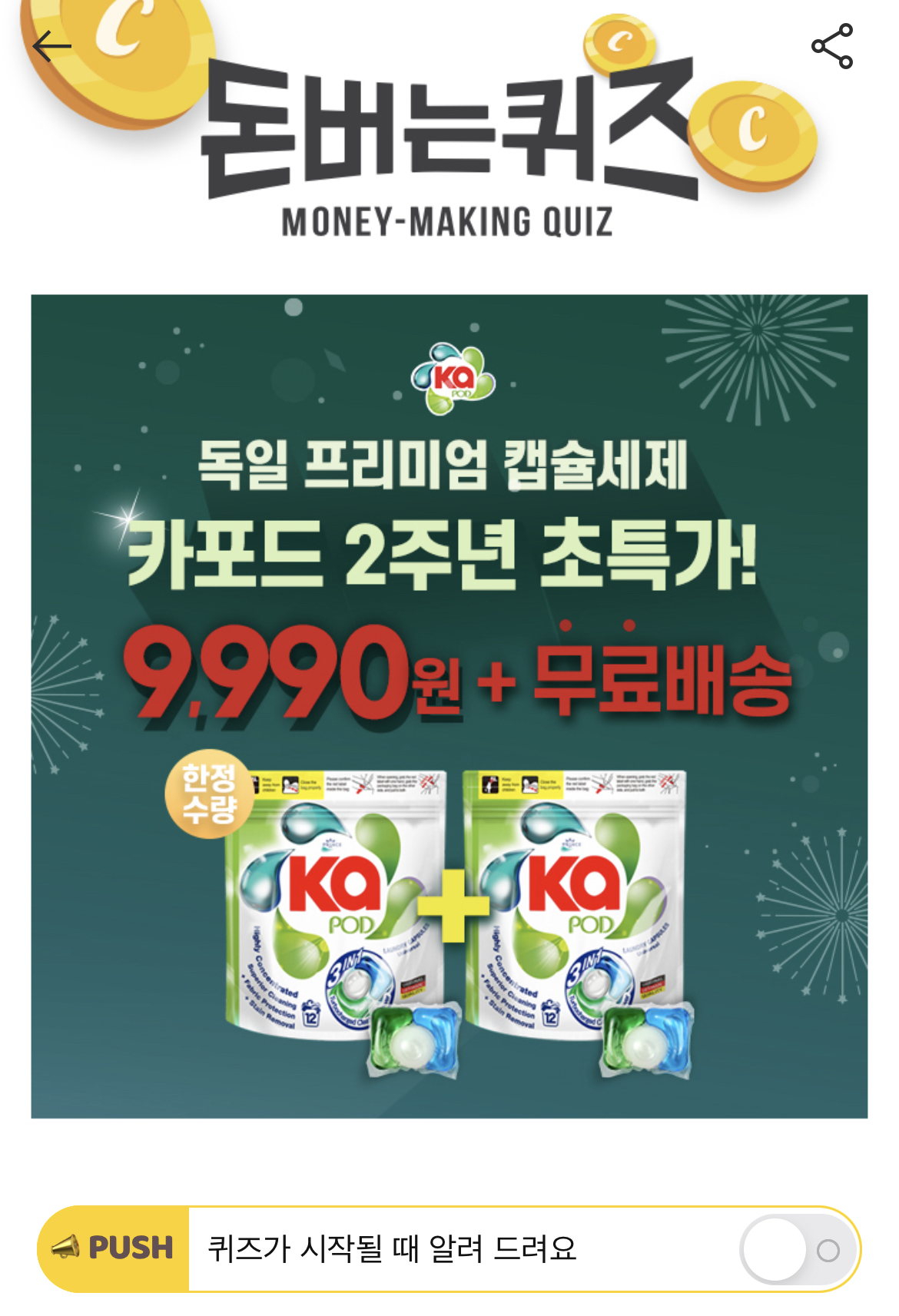 캐시워크 돈버는 퀴즈 정답 카포드 캡슐세제 ㅅㅌㄹㄹ