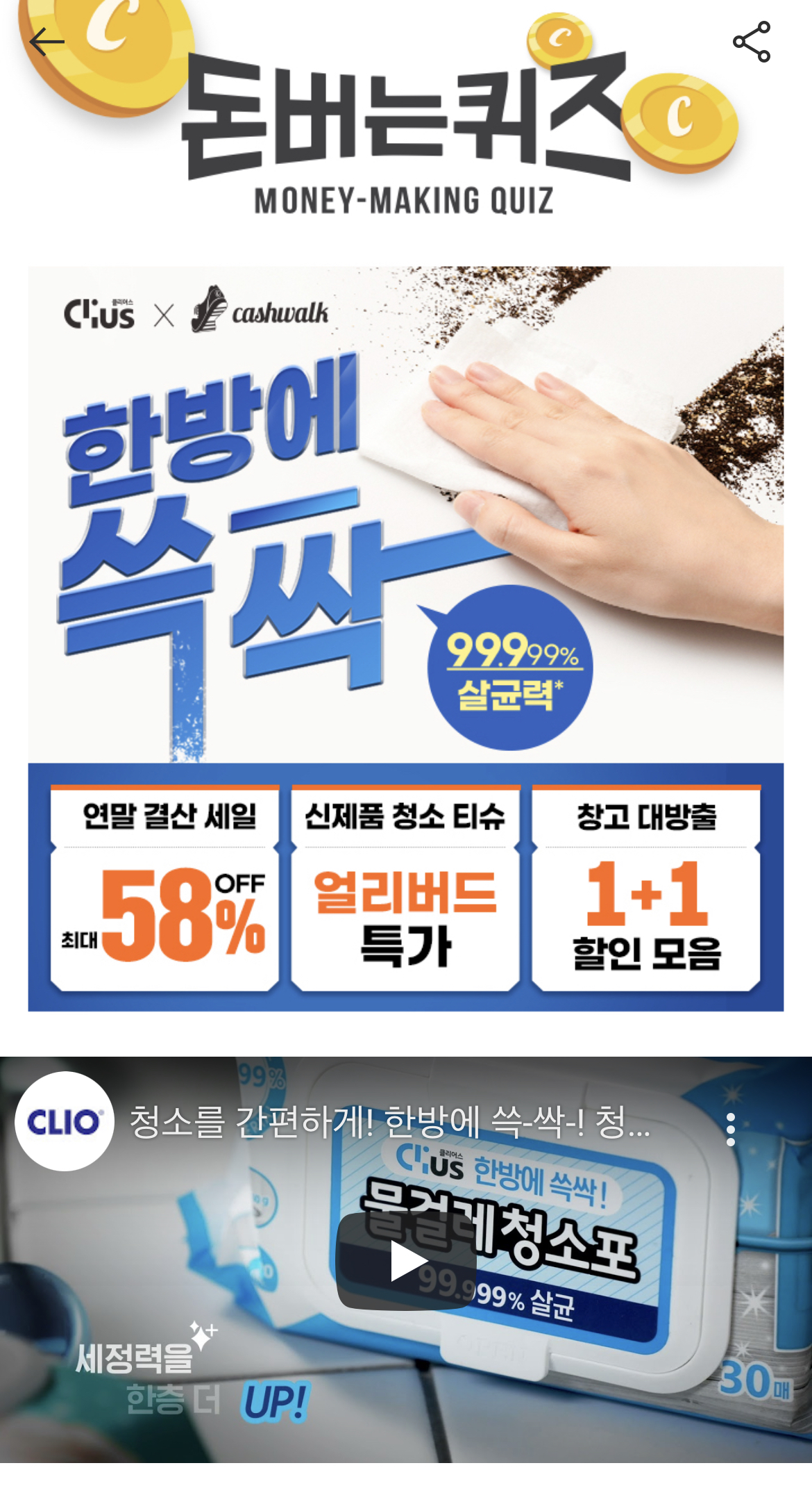 캐시워크 돈버는 퀴즈 정답 크리오 ㄱㅍㅎㅊㅅ
