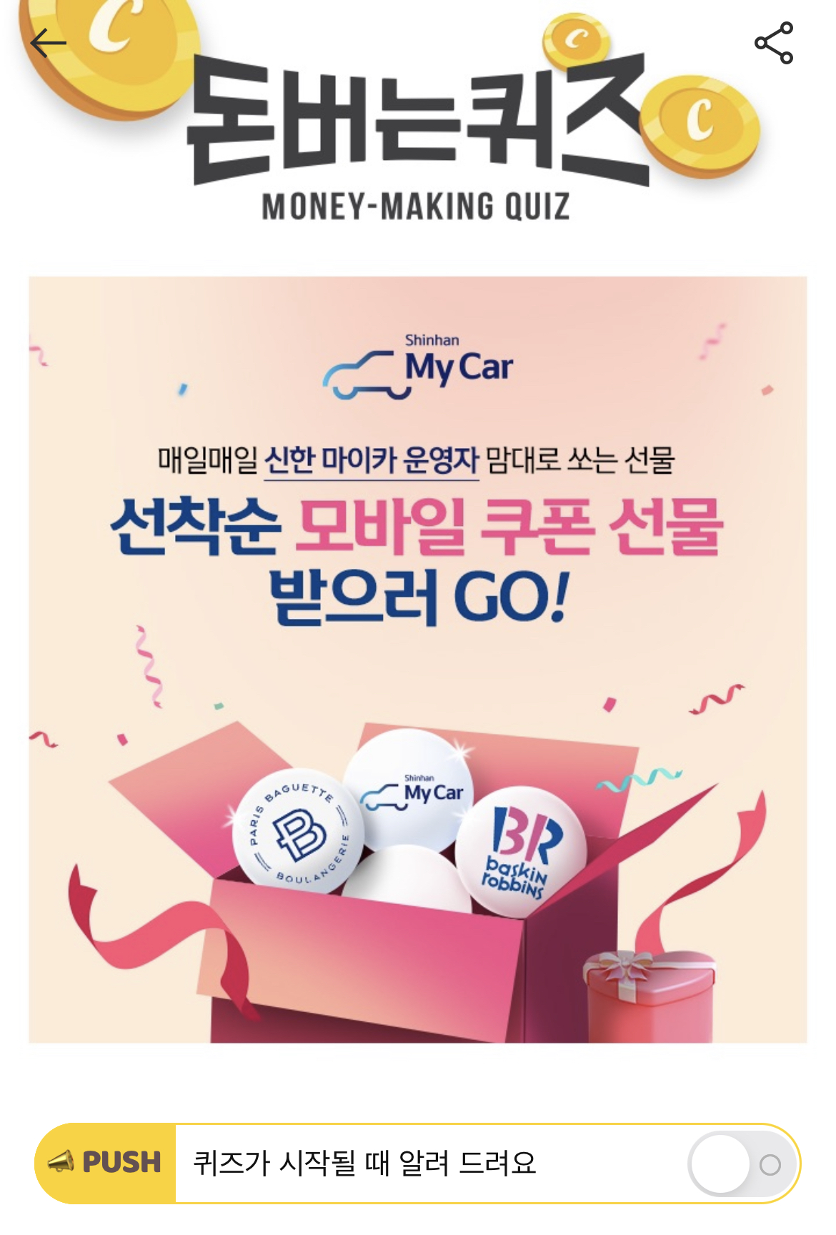 캐시워크 돈버는 퀴즈 정답 신한 마이카 ㅁㅇㅋㅋㅍ