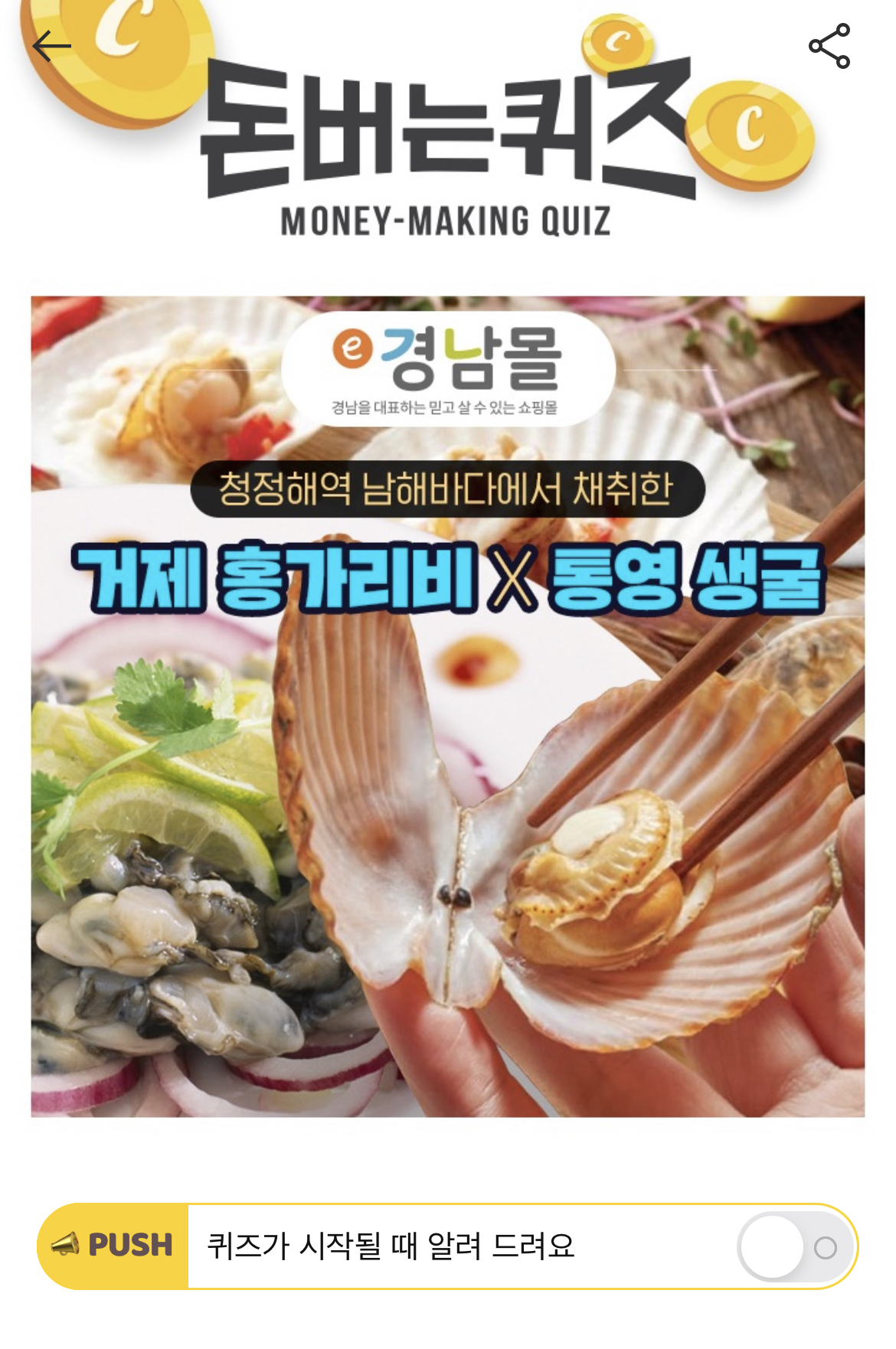 캐시워크 돈버는 퀴즈 정답 네이버쇼핑라이브 e경남몰 맛보장SHOW ㅁㅅㅁ