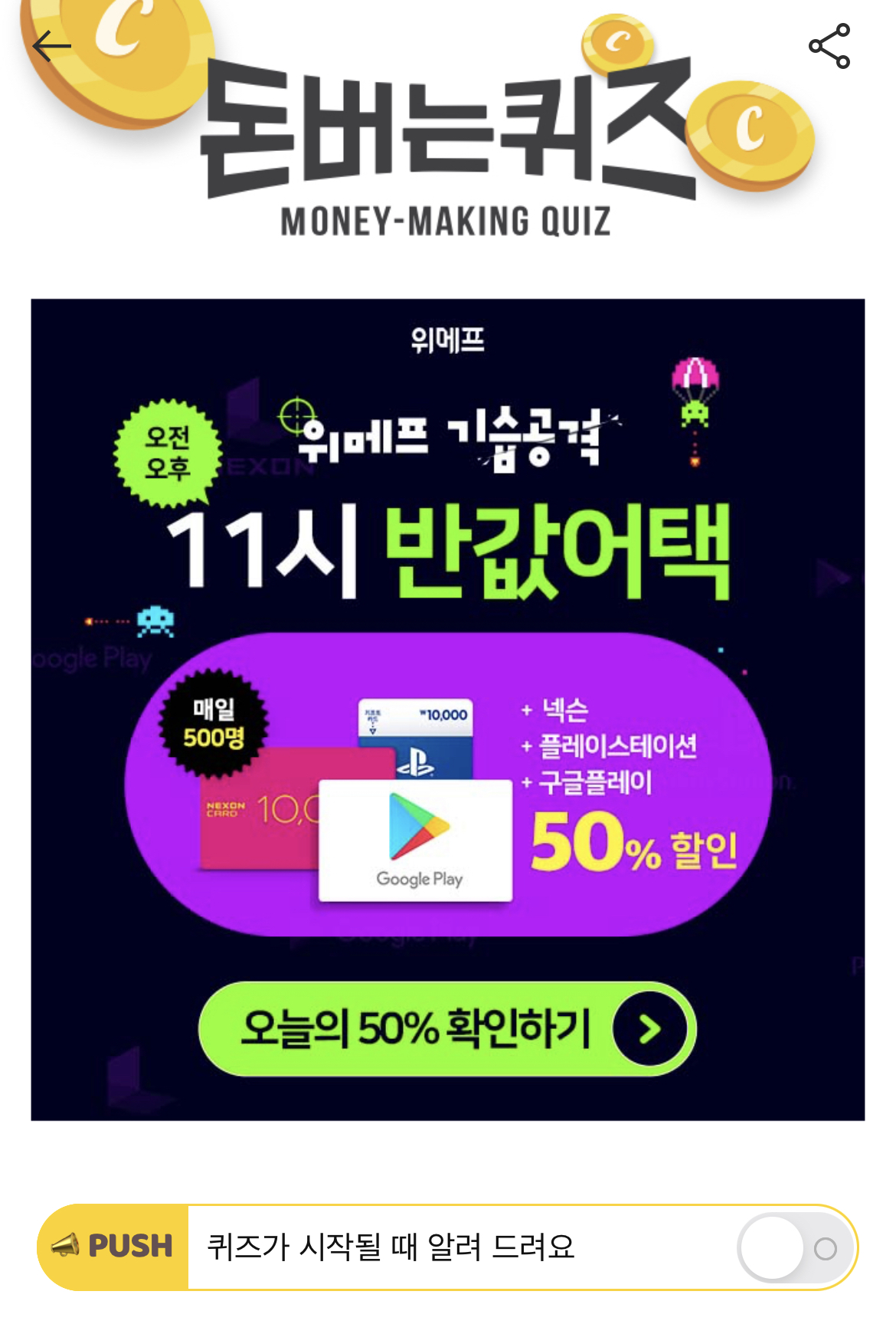 캐시워크 돈버는 퀴즈 정답 위메프 기습공격 ㄱㄱㅍㄹㅇ