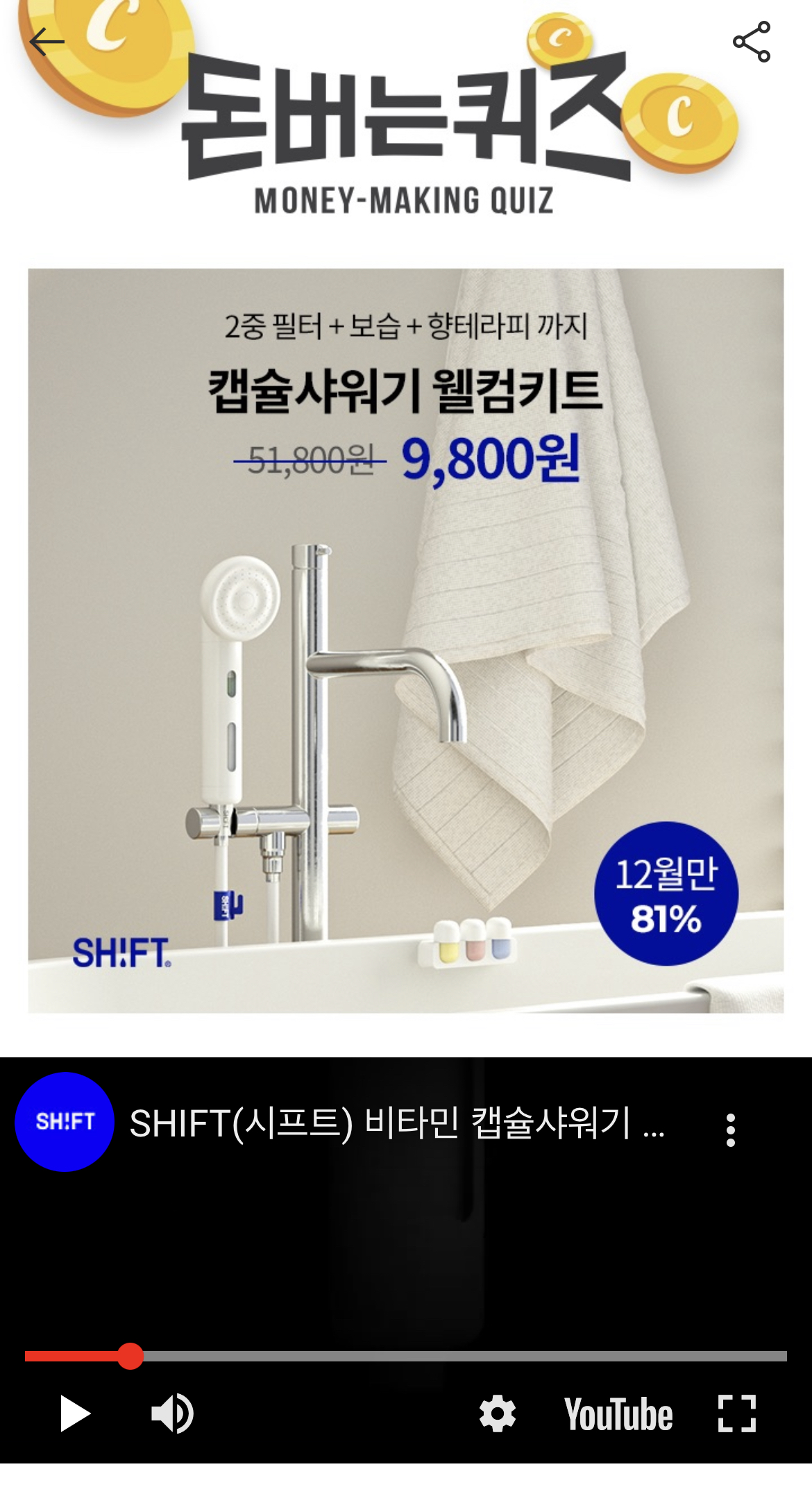 캐시워크 돈버는 퀴즈 정답 시프트 비타민 캡슐샤워기 ㅇㄱㅇ
