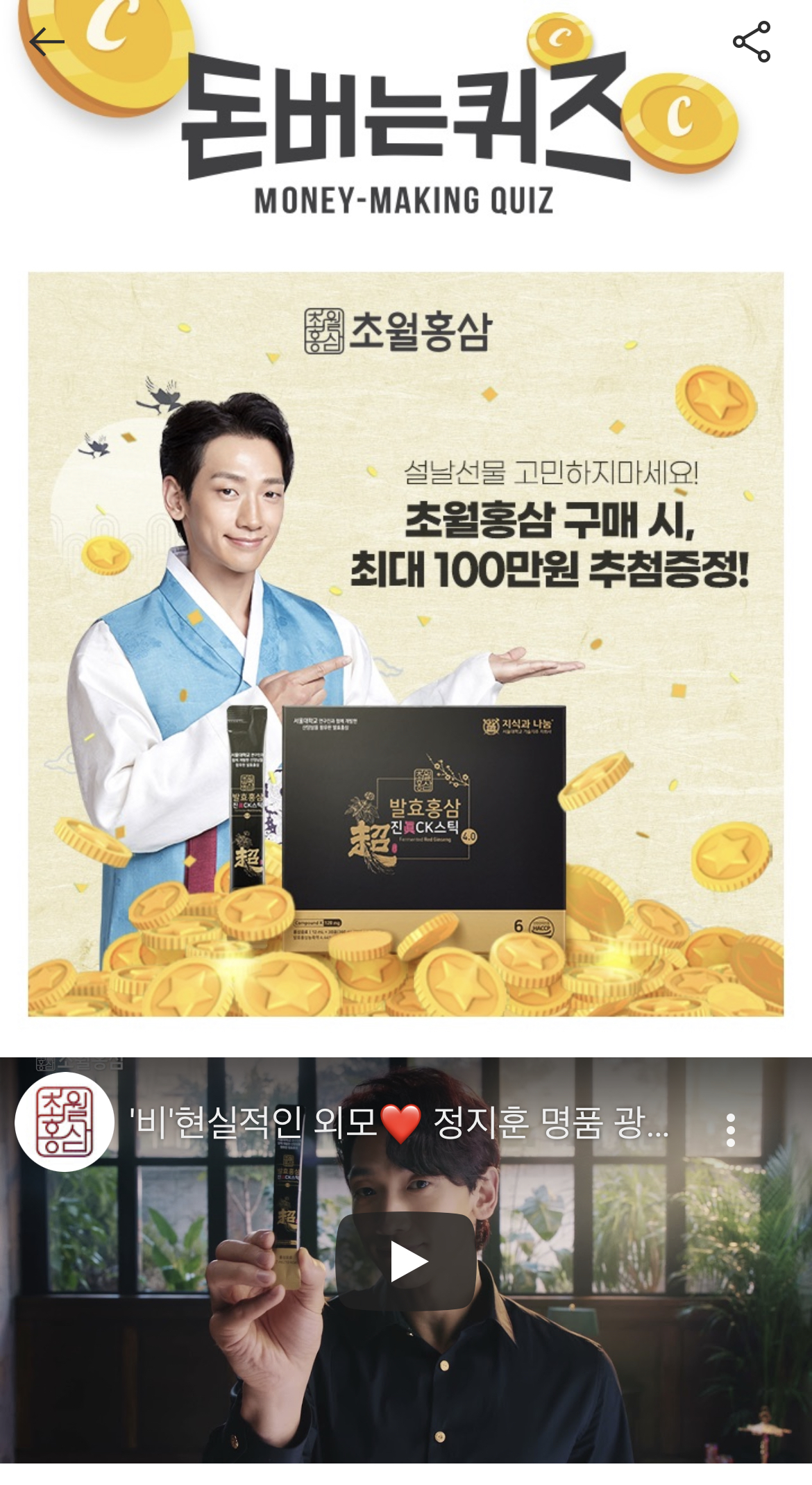 캐시워크 돈버는 퀴즈 정답 초월홍삼 이벤트 최대 100만원