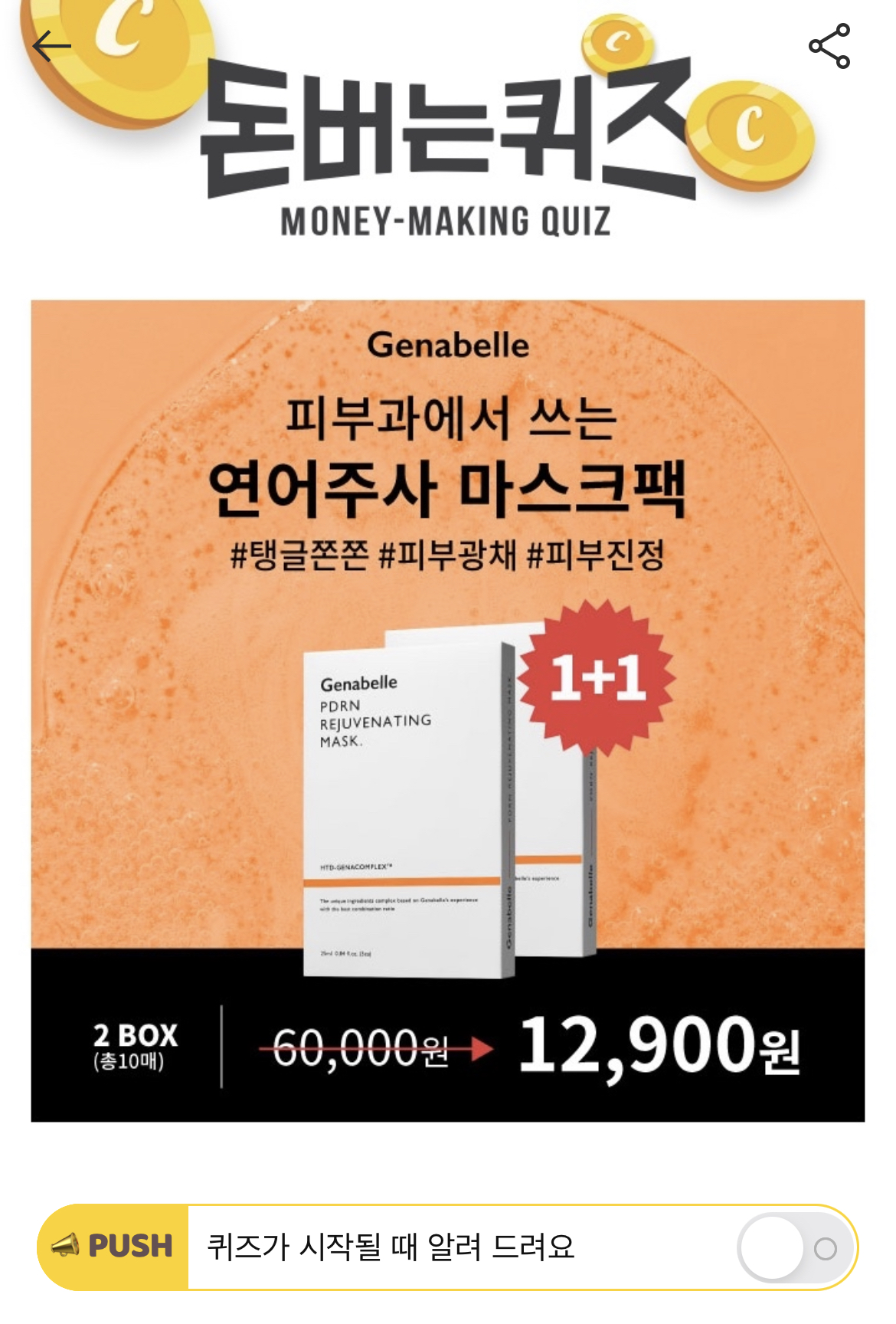 캐시워크 돈버는 퀴즈 정답 제나벨 연어주사 마스크팩 ㅌㅅㅋㅍㄹ