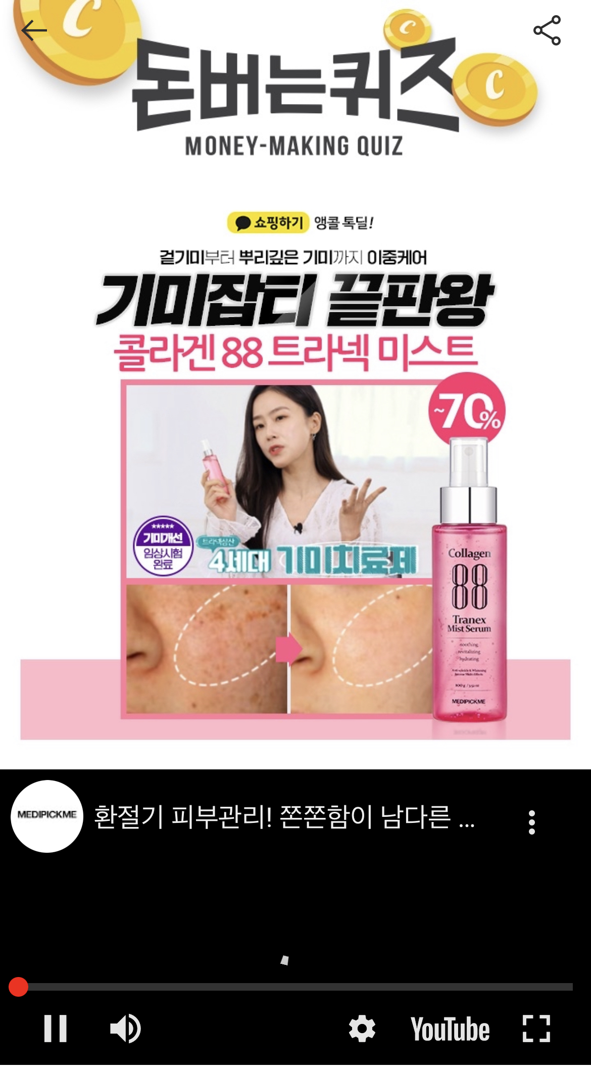 캐시워크 돈버는 퀴즈 정답 메디픽미 콜라겐 88 트라넥 미스트